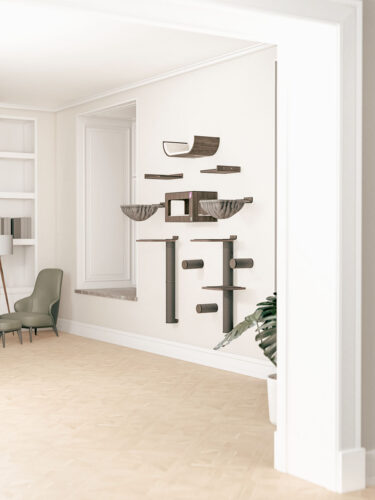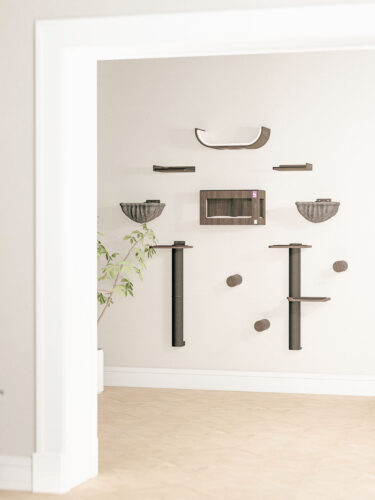 Deze veelzijdige set is op meerdere manieren samen te stellen. Houd rekening met de grootte en klimvermogen van je kat(ten). Heb je kleine katten of hebben ze wat moeite met klimmen? Hang de onderdelen dan dicht bij elkaar. Heb je grote, energieke katten? Dan kun je overwegen de onderdelen verder uit elkaar te hangen.