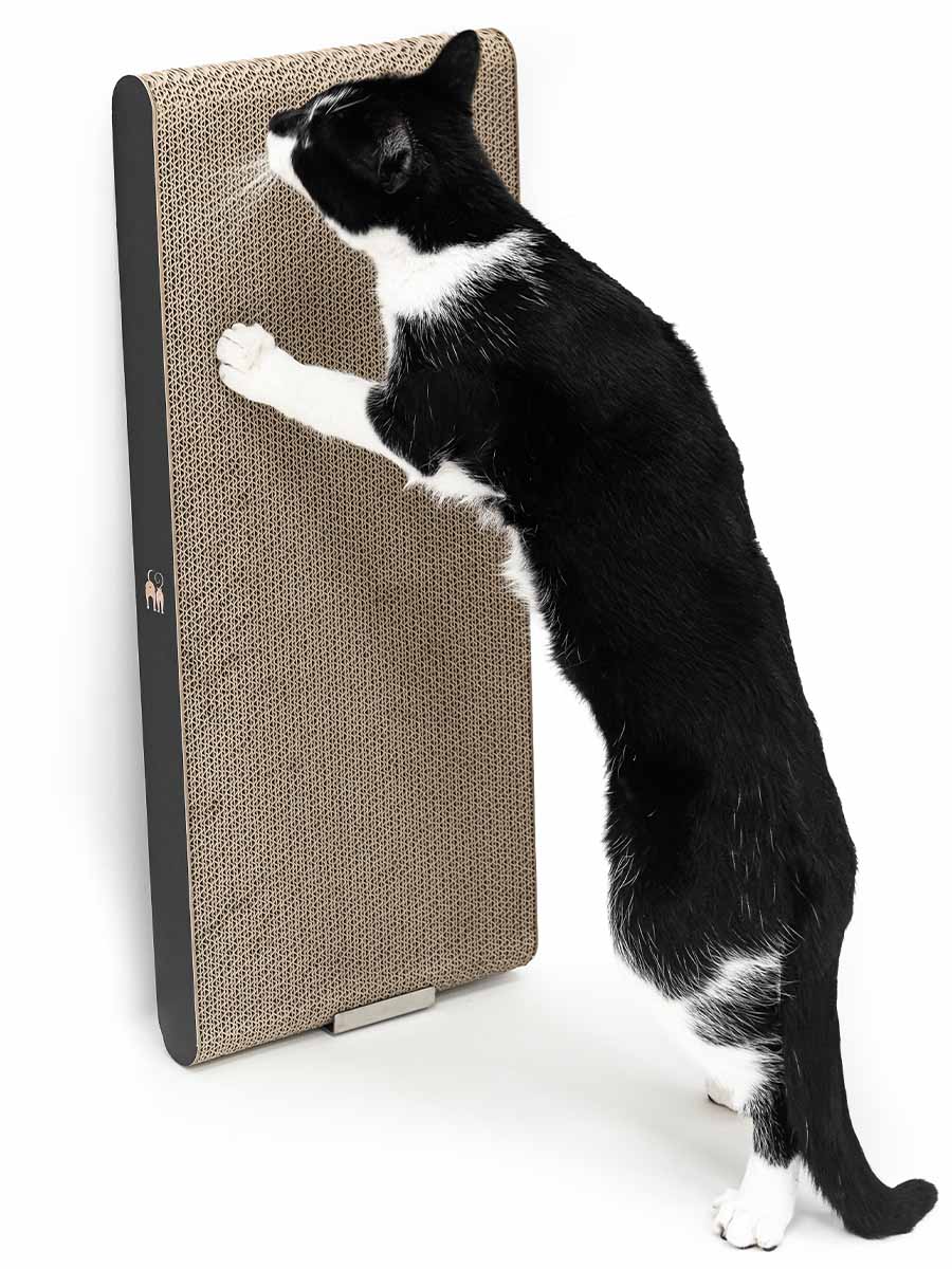 Milo 63 is gemaakt van oersterk gerecycled karton en is heerlijk om aan te krabben. En je monteert deze krabplank – dankzij het meegeleverde frame – heel makkelijk op elke muur in huis. Dat is handig én slim, want katten vinden het heerlijk om aan een wandobject te krabben: zo verzorgen ze hun nagels, markeren ze hun territorium en houden ze hun spieren sterk en soepel. Het karton van Milo 63 is sterk en heeft een structuur waar katten graag even in hangen met hun nagels. Wil je dit krabmeubel even uitzuigen, op de grond leggen of vervangen? Dan schuif je hem supermakkelijk uit het frame. Toppertje hoor!