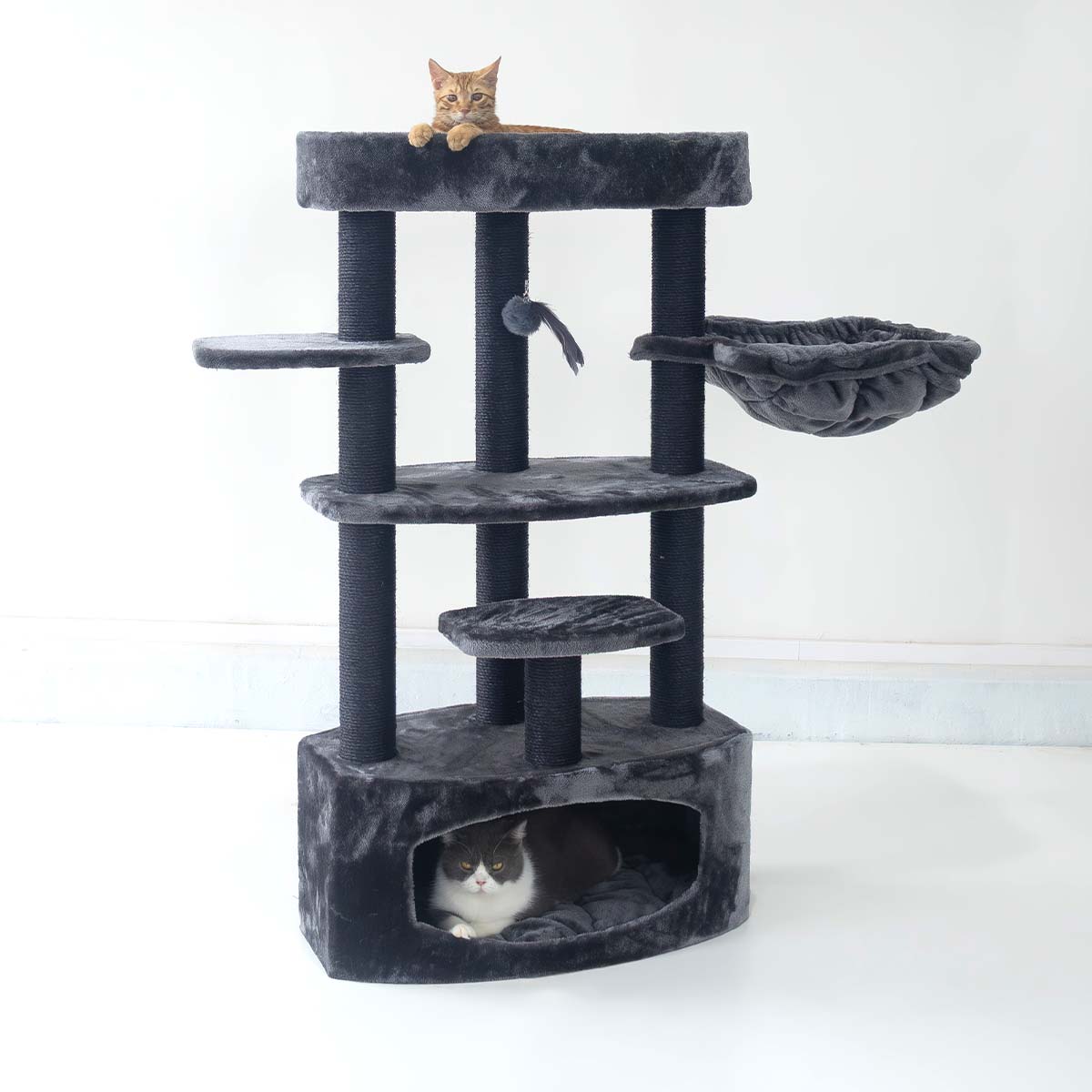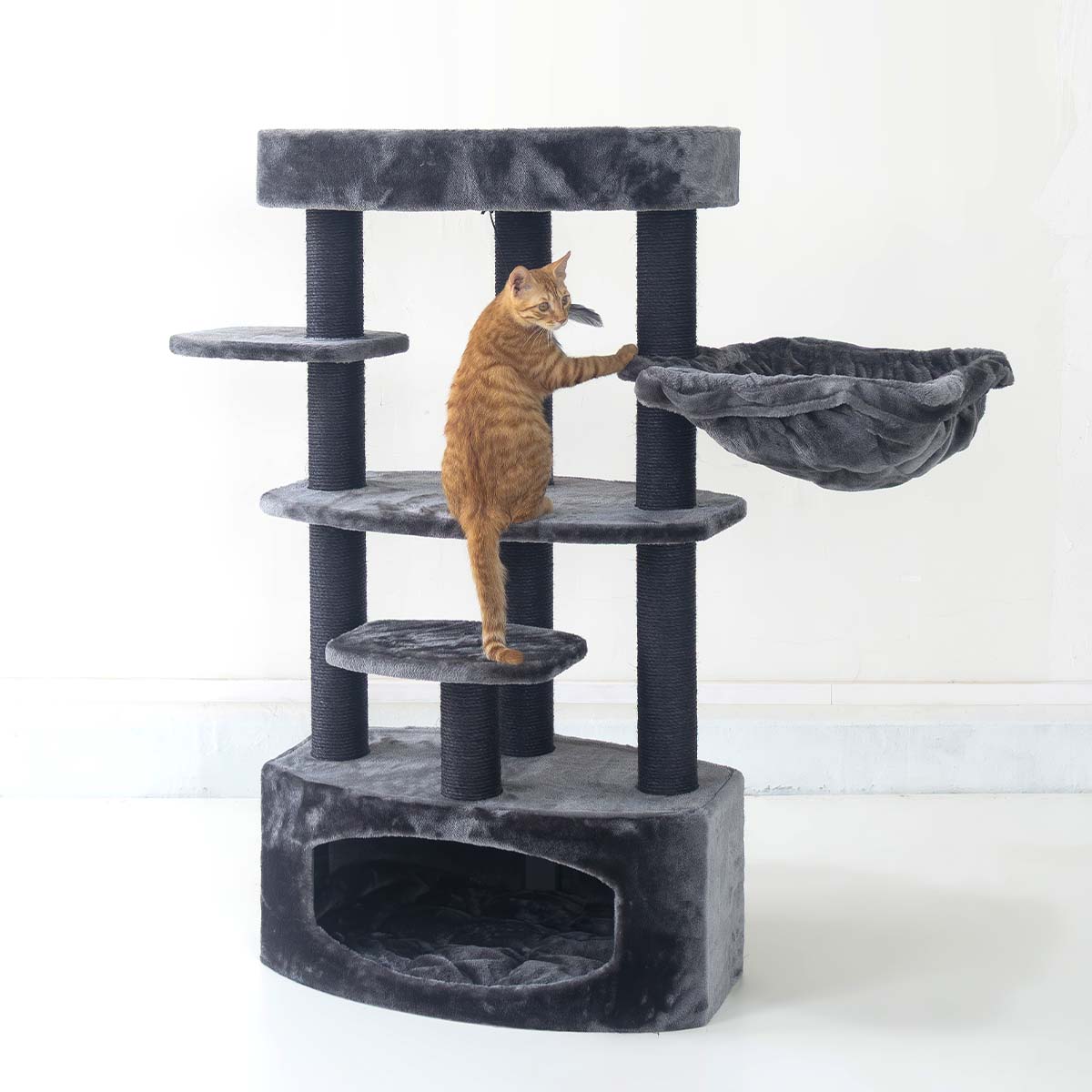 Verdient jouw kat iets leuks, iets waar hij echt blij van wordt? Verwen hem dan met een nieuwe krabpaal. Onze Alexandra 127 bijvoorbeeld. Deze krabpaal is bekleed met de allerzachtste pluche en heeft maar liefst drie heerlijke plekken om veilig in te slapen – een relaxte hangmat, een loungemand én een knus kattenhuisje met een zacht kussen erin. En met hoge krabstammen met stevige sisal en ruime plateaus is dit ook een plek waar je kat heerlijk in kan klimmen en aan kan krabben. Een krabpaal om van te dromen dus!