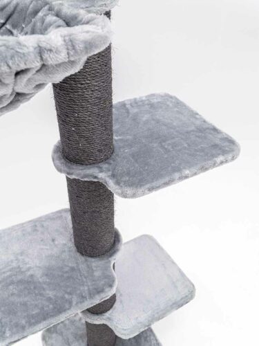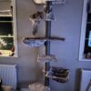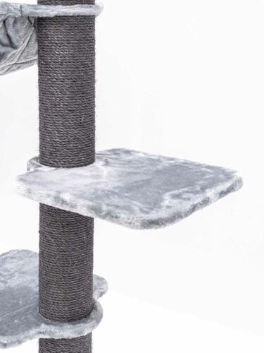 Een prachtige, stevige klimpaal. Ook voor onze drie main coons! Wij vinden het echter wel jammer dat de onderkant van de plankjes niet bekleed is, omdat hij zo hoog is en je tegen de onderkant aankijkt. Verder zijn ze er superblij mee.