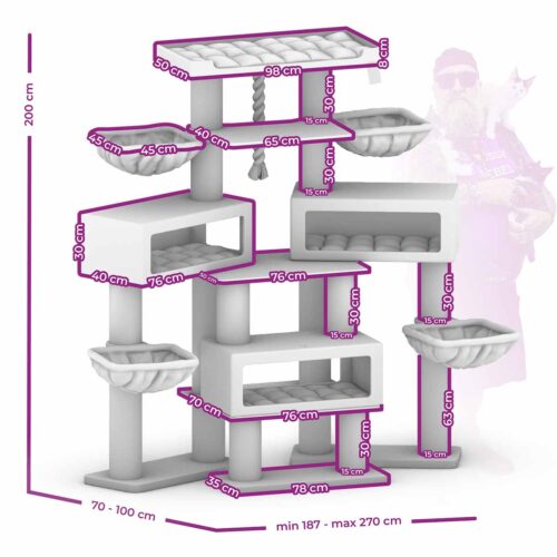 Magnifique arbre à chat ! C’est le second arbre à chats Pet Rebels que je commande et je suis plus que ravie. Le montage est très bien expliqué et assez rapide, la qualité des couchages est incroyable. Ils se lavent très bien en machine. L’arbre à chats est gigantesque et d’une grande stabilité. Il fallait bien ça pour mes chats qui ont chacun trouvé leur place dedans. Les niches sont de véritables cocons où même mon Maine Coon adore aller se mettre pour un dodo bien mérité Je suis très satisfaite.