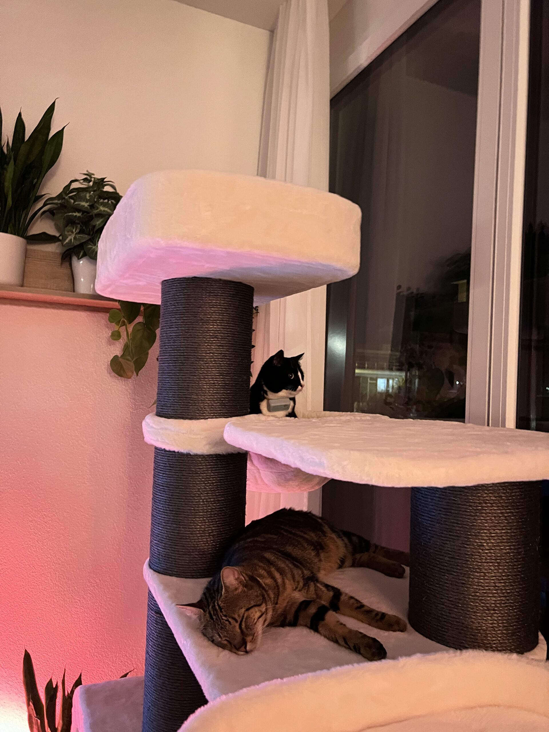 Richtig toller Kratzbaum. Für meine beiden Tiger perfekt. Für eine Person gut aufzubauen steht stabil. Wir werden unsere Freude haben.