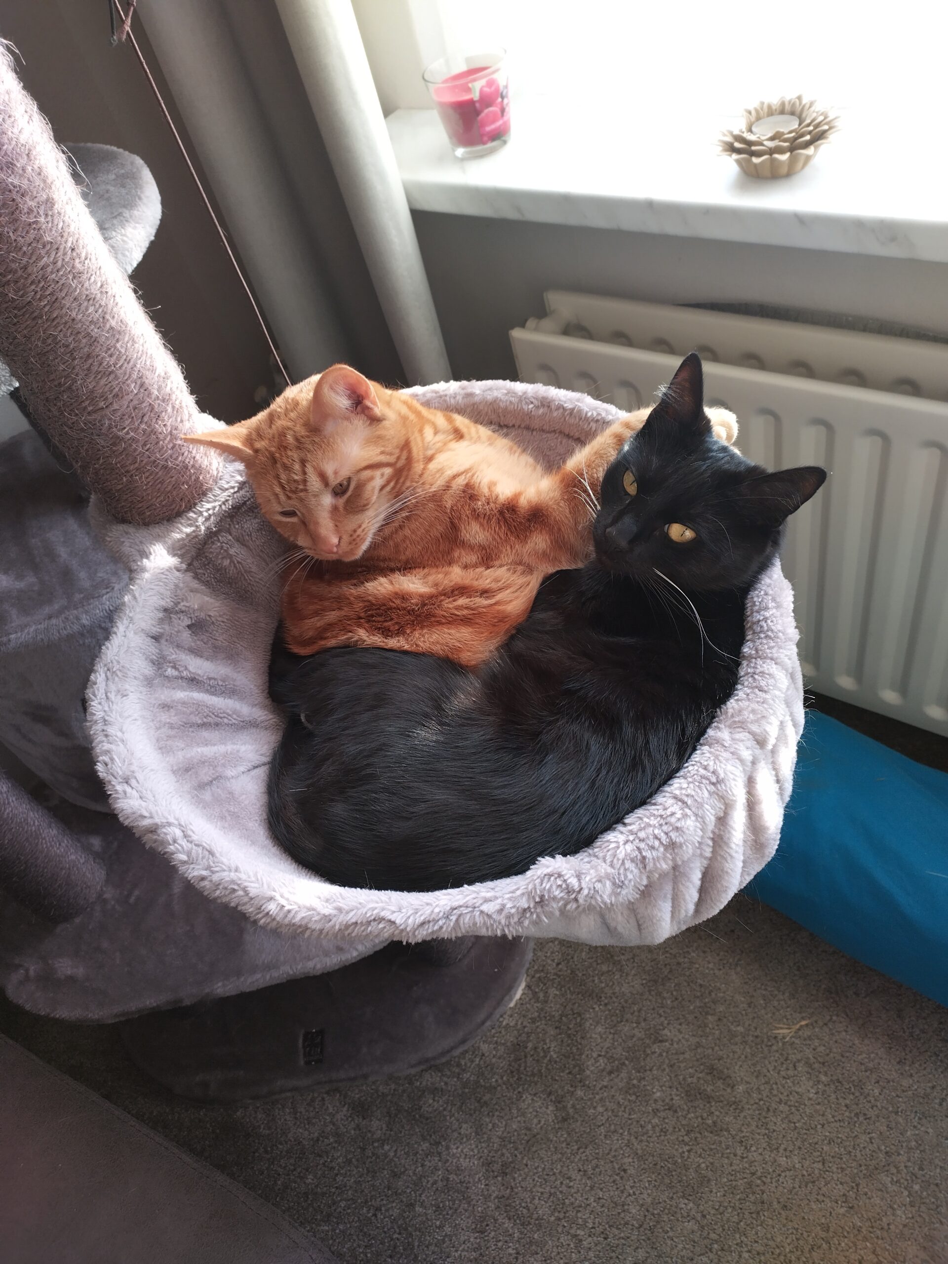 Wel jammer dat ze niet meer bij mij in bed willen slapen maar liever in de krabpaal…