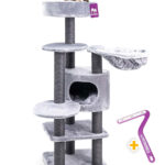 Superbe arbre à chat. Mon chat est très content. Il aime bien être à l’étage supérieur. Et dans les petites Maison. Et le hamac qu’il aime bien aussi. Livraison très rapide. Facile à monter. J’en suis très content. Merci
