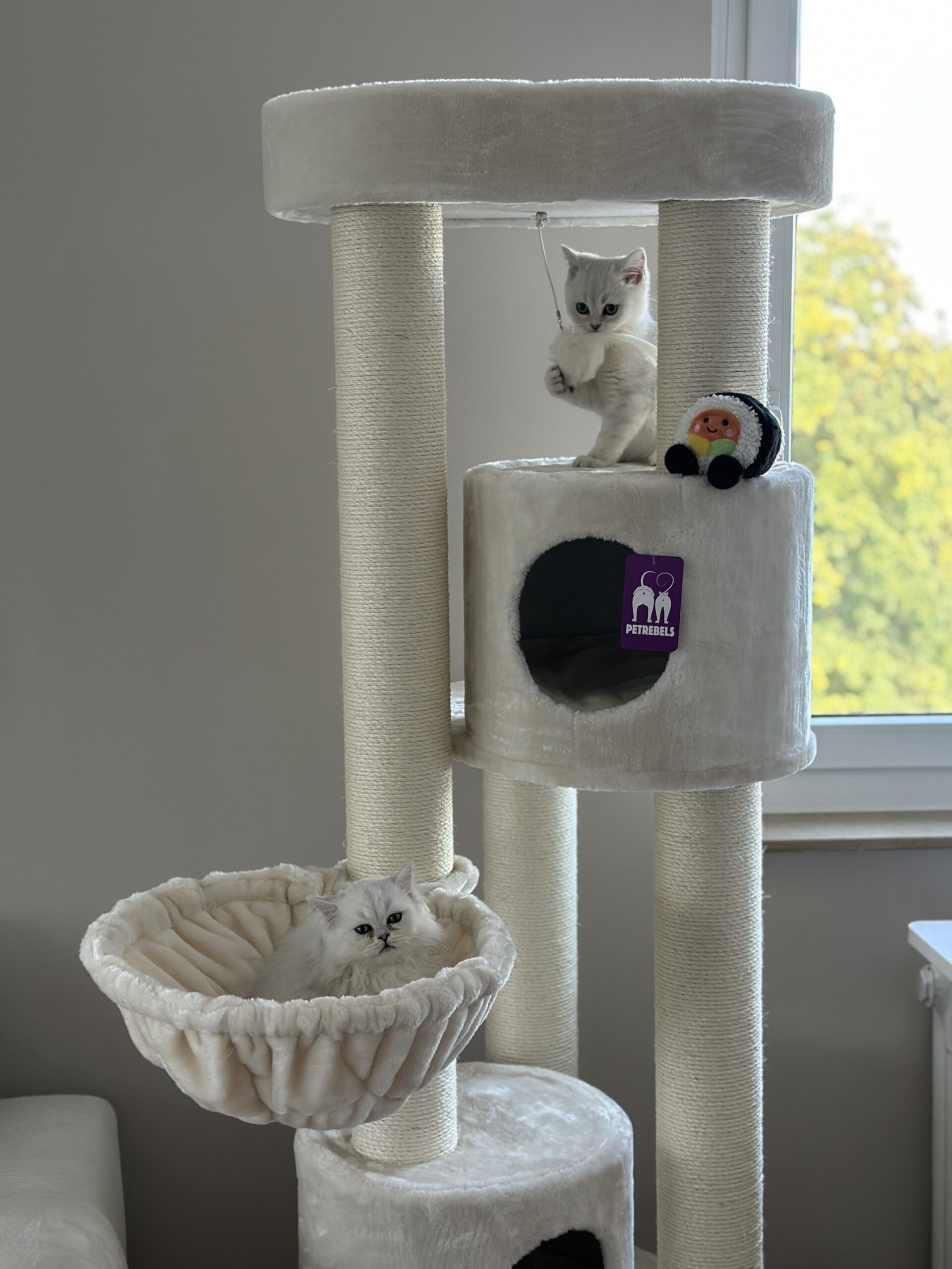 Der Kratzbaum Charlotte 180 hat sofort unsere Herzen – und vor allem die unserer zwei Fellnasen – erobert! Kaum aufgebaut, wurde er direkt angenommen und seitdem täglich ausgiebig genutzt. Ob zum Klettern, Spielen, Kratzen oder Kuscheln – unsere beiden Katzen fühlen sich darauf rundum wohl. Die Verarbeitung wirkt hochwertig und stabil, sodass der Kratzbaum auch bei wildem Toben sicher steht. Für uns und unsere Stubentiger ein absoluter Volltreffer – klare Kaufempfehlung!
