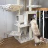 My cat kept knocking over her old cat tree, so I wanted to look for one that was bigger and more stable. When I saw this cat tree from Petrebels, I hesitated due to the price, but I took the leap anyway. Now I can say that it was totally worth it. The cat tree is much more solid and stable than the previous one and it has several floors. My cat likes variety, so she changes levels depending on her mood. She’s calmer and sleeps more since she has this tree. Definitely recommended.