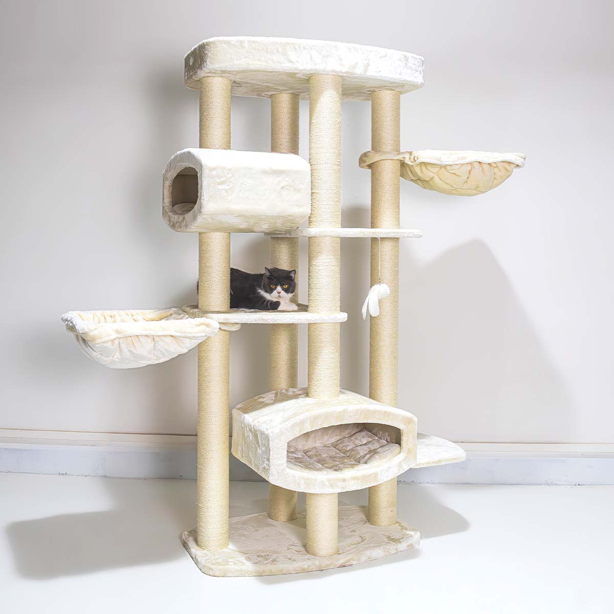 Krabpaal Drive 195 is een echte blikvanger: hij is wel 195 hoog, ruim en ideaal voor katten die van ontdekken, krabben én luieren houden. Je kat kan al zijn energie en stress kwijt door aan de krabstammen te krabben of door van het ene naar het andere plateau te springen. Voor rust en veiligheid kan je kat hier ook zijn hart ophalen, want dit krabmeubel heeft heel veel zachte en veilige slaapplekken – allemaal bekleed met de dikste en allerzachtste pluche. En hij is nog mooi ook, wat wil je nog meer?!