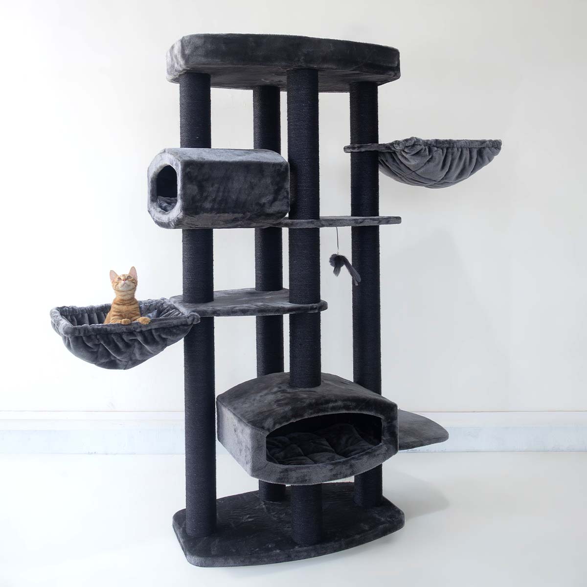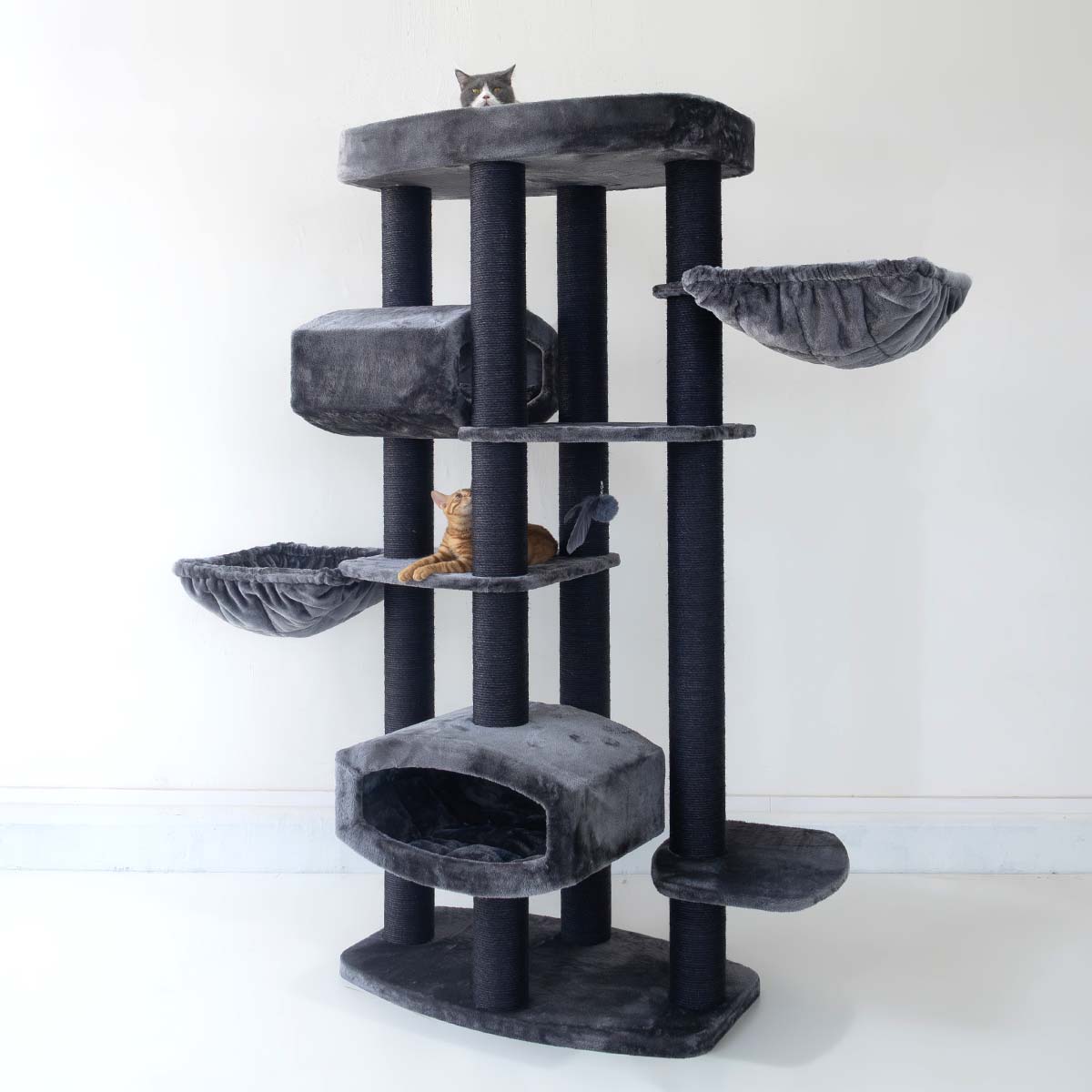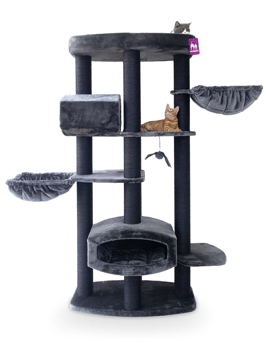 Krabpaal Drive 195 is een echte blikvanger: hij is wel 195 hoog, ruim en ideaal voor katten die van ontdekken, krabben én luieren houden. Je kat kan al zijn energie en stress kwijt door aan de krabstammen te krabben of door van het ene naar het andere plateau te springen. Voor rust en veiligheid kan je kat hier ook zijn hart ophalen, want dit krabmeubel heeft heel veel zachte en veilige slaapplekken – allemaal bekleed met de dikste en allerzachtste pluche. En hij is nog mooi ook, wat wil je nog meer?!