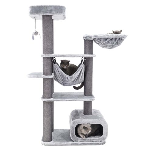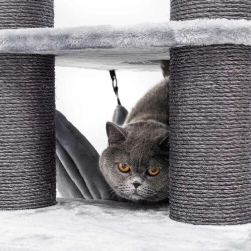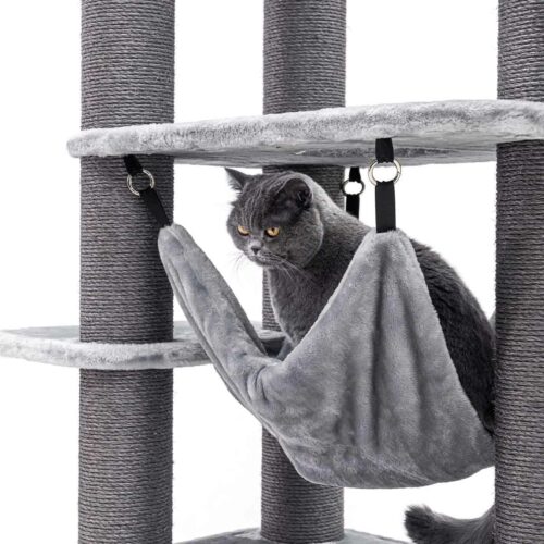 Het is een echte beauty, ons krabmeubel Interstate 178. Want met zijn indrukwekkende lengte en stevige bouw is hij ideaal voor katten die vaak binnen zijn en die gek zijn op krabben, spelen, klimmen en chillen. De hoge krabstammen en plateaus dagen je kat uit om even lekker actief te zijn en de comfortabele loungemand, het royale slaaphuisje en de zachte hangmatten zijn ideaal voor een heerlijk schoonheidsslaapje. Met de Funky Rebel erbij is dit dé favoriete relax- en speelplek van elke kat!