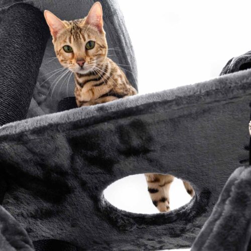 Het is een echte beauty, ons krabmeubel Interstate 178. Want met zijn indrukwekkende lengte en stevige bouw is hij ideaal voor katten die vaak binnen zijn en die gek zijn op krabben, spelen, klimmen en chillen. De hoge krabstammen en plateaus dagen je kat uit om even lekker actief te zijn en de comfortabele loungemand, het royale slaaphuisje en de zachte hangmatten zijn ideaal voor een heerlijk schoonheidsslaapje. Met de Funky Rebel erbij is dit dé favoriete relax- en speelplek van elke kat!