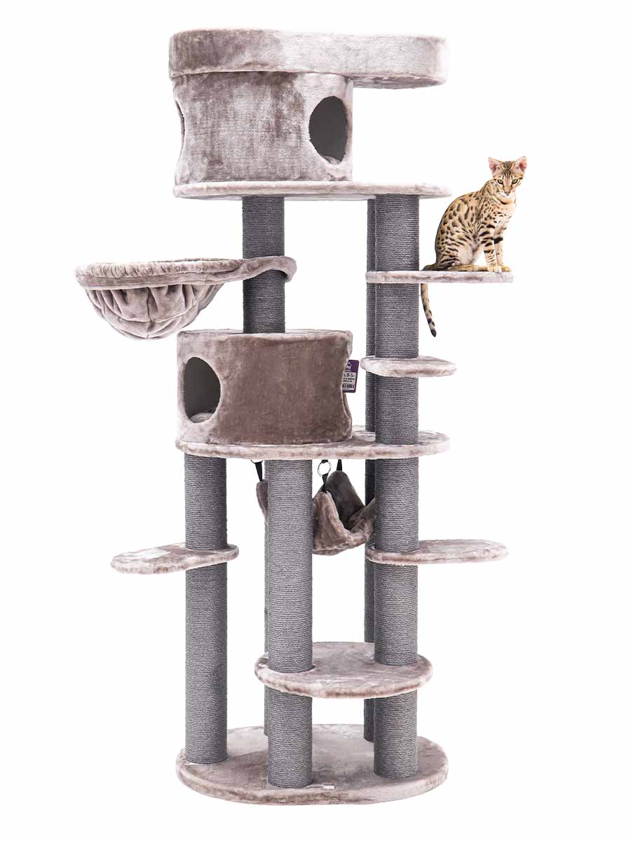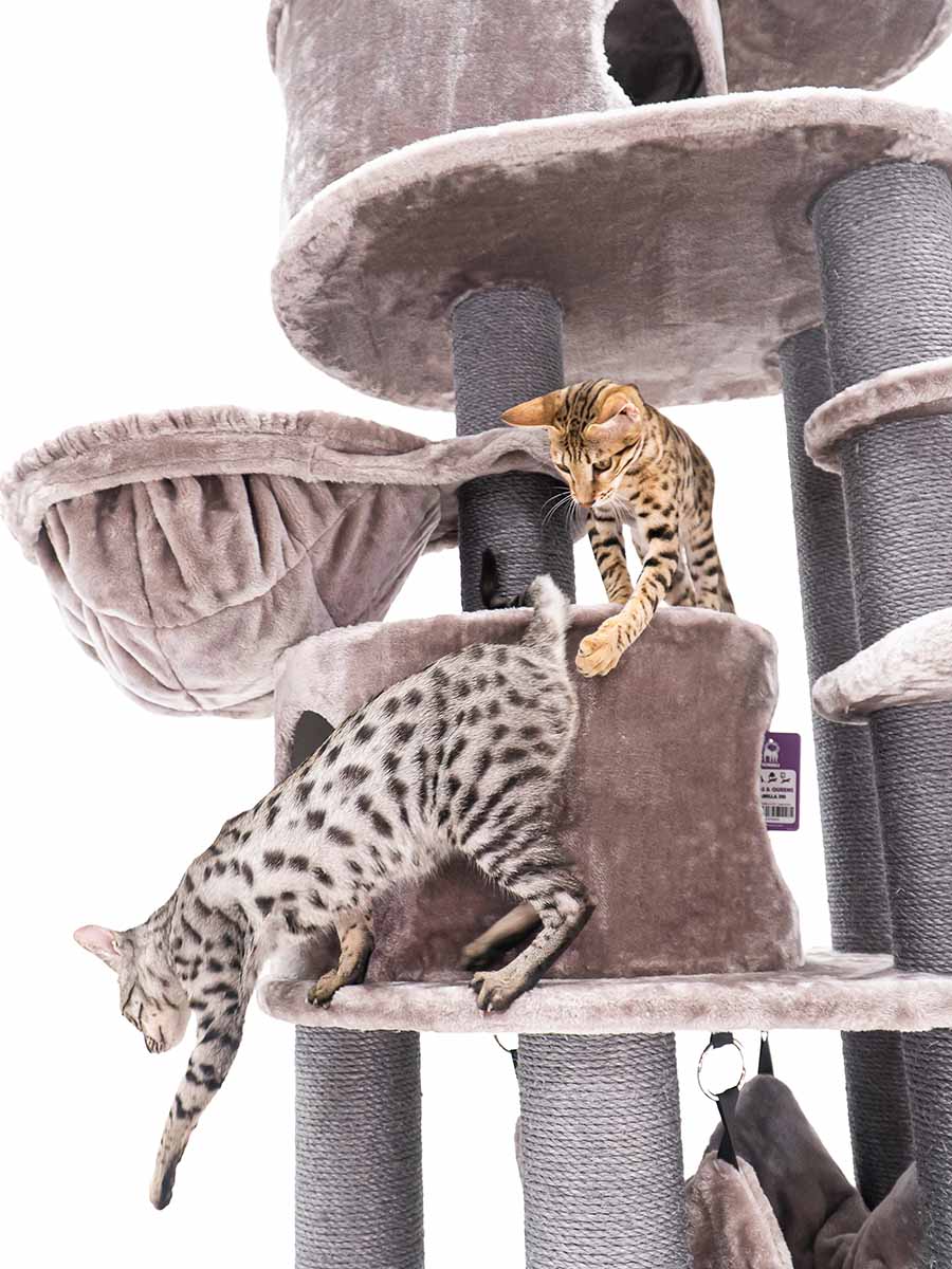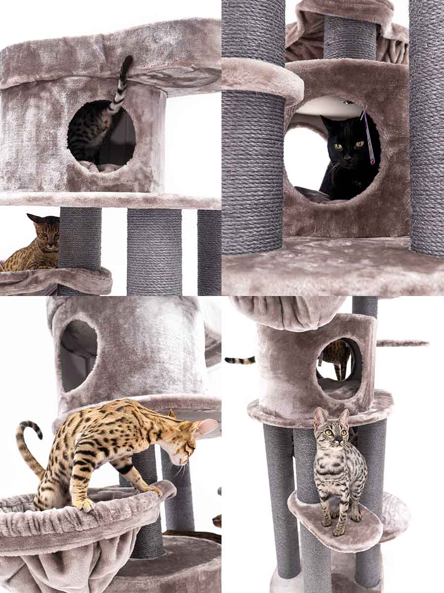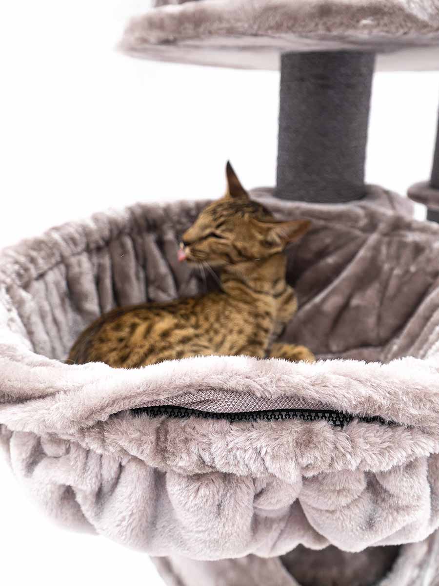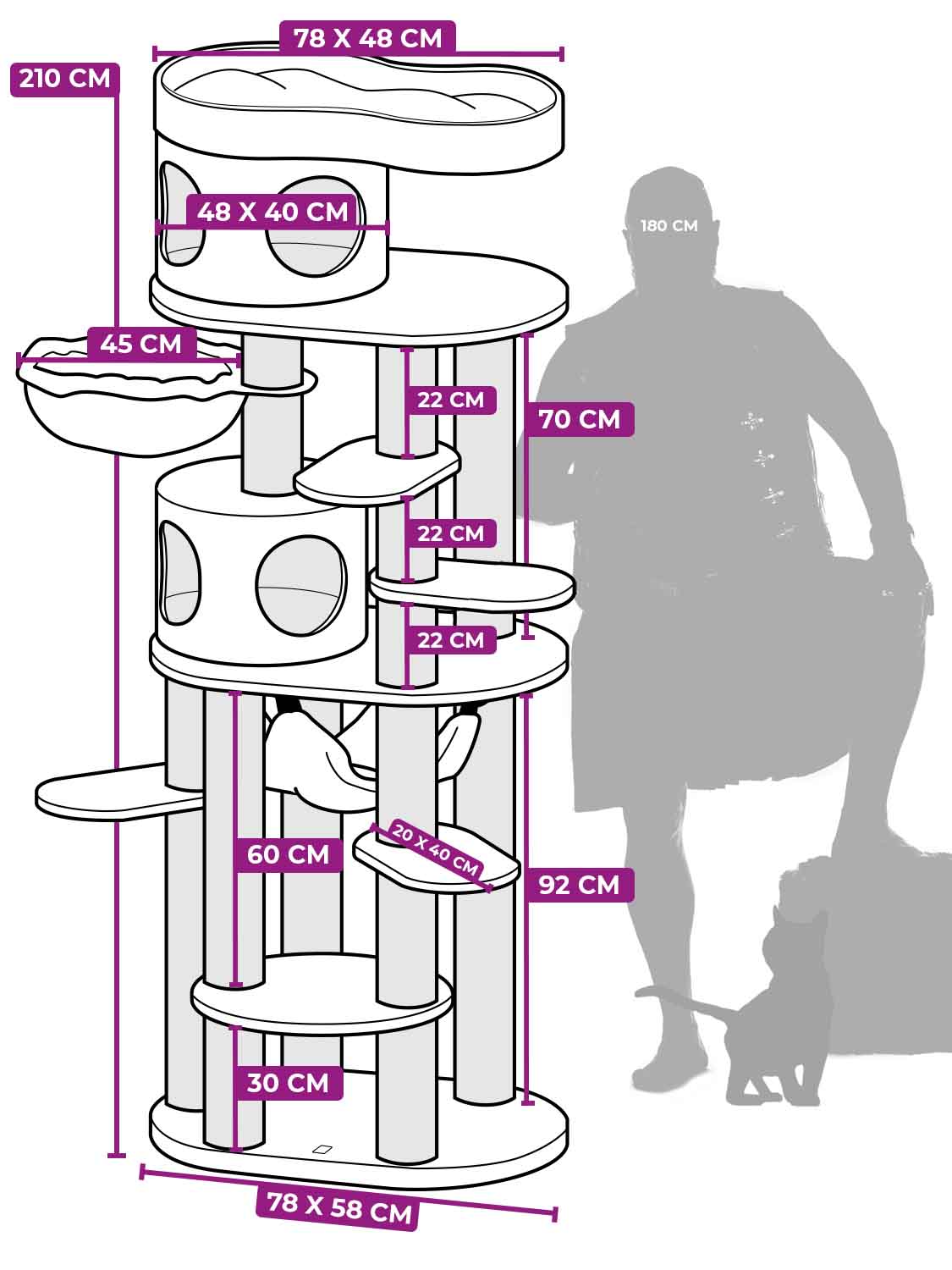 Maak kennis met de grote zus (of broer) van onze populaire Isabella: de Isabella 210. Deze royale krabpaal is hoger, luxer en nóg uitgebreider. Met maar liefst twee knusse slaaphuisjes, een grote hangmat, meerdere plateaus én een XXL loungemand bovenin is dit een paradijs voor klimmers, dromers en speelkampioenen. En dankzij de extra dikke pluche voelt alles heerlijk zacht aan. De stevige bodemplaat en extra hoge krabstammen zorgen voor maximale stabiliteit én lekker veel krabplezier. Ideaal voor alle soorten katten, ook voor senioren, kleintjes of bangepoeperds die het fijn vinden om alles en iedereen vanaf grote hoogte in de gaten te houden.