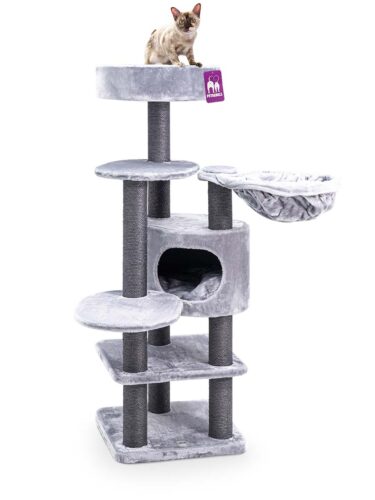 Dit compacte krabmeubel heeft werkelijk alles wat een echte Royal Rebel nodig heeft, zonder al te veel ruimte in beslag te nemen. Slapen, spelen, krabben en loeren, met de Jane 138 zitten jouw Rebels helemaal gebakken. Want met krabstammen van maar liefst 9 centimeter dik, een zacht slaapholletje, een heerlijke hangmat en een extra grote loungemand bovenin voorziet deze krabpaal in elke behoefte. En door de extra dikke bodemplaat staat dit toffe kattenmeubel als een huis.