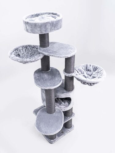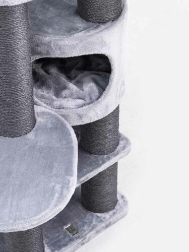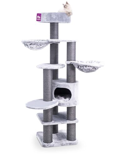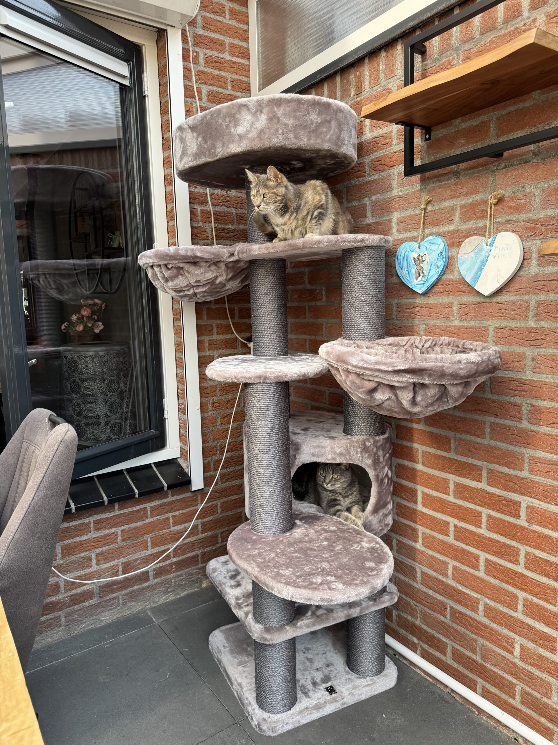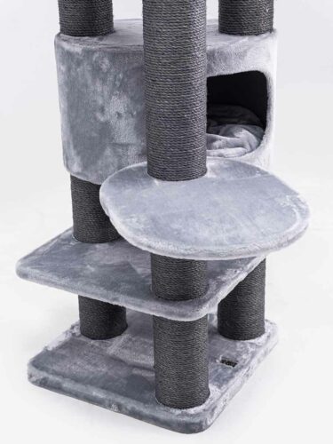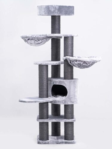 Krabmeubel Jane 175 maken we speciaal voor grote katten en kattenrassen. Die hebben namelijk behoefte aan sterke en hoge krabstammen om aan te krabben en zich uit te strekken. Want daar worden ze blij van. Maar er is meer! Twee superzachte hangmatten, een fijn slaaphuisje en een grote zachte loungemand bovenop. Plek zat dus voor meerdere katten. En door de extra dikke bodemplaat is deze topper superstabiel.