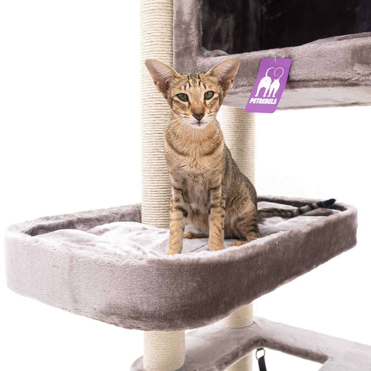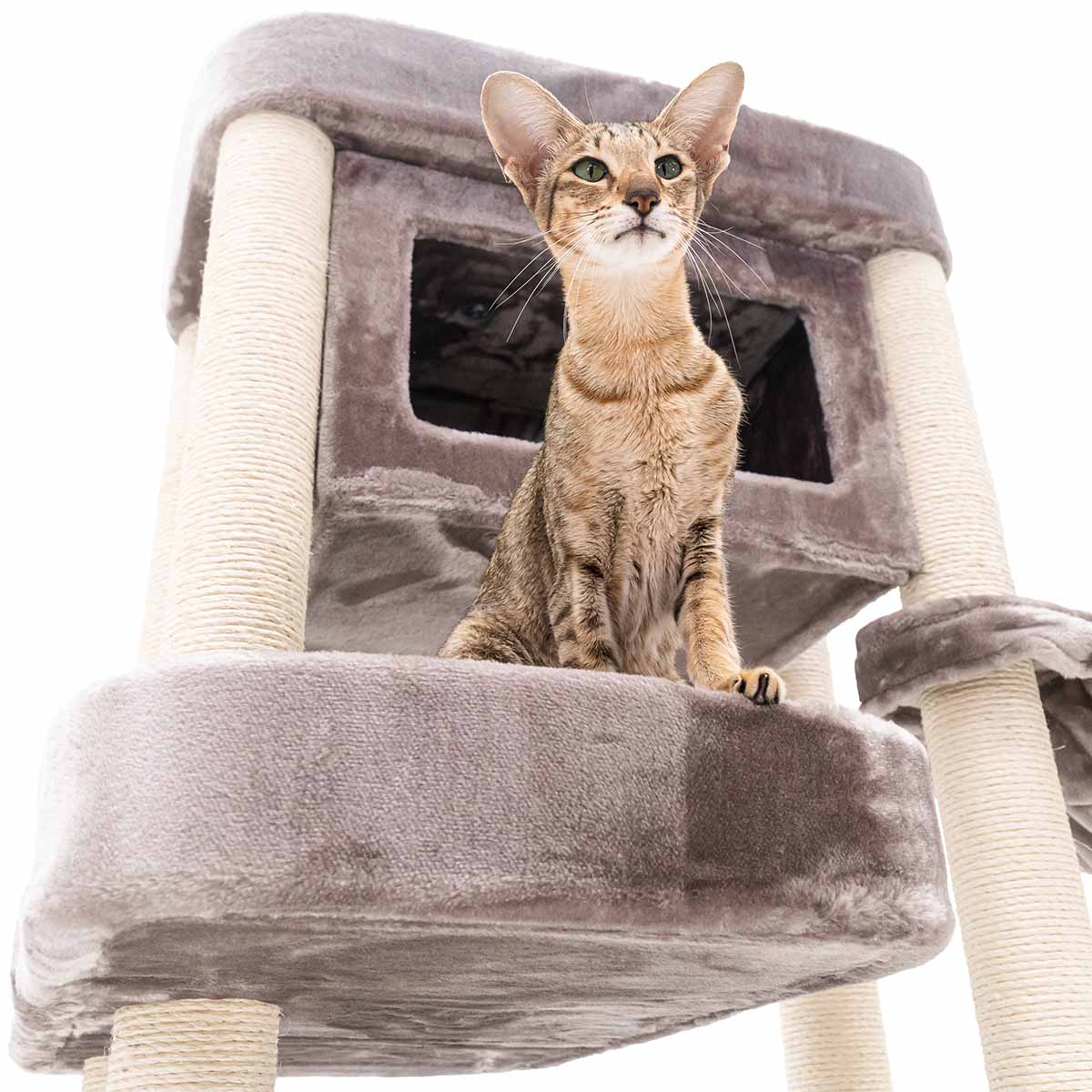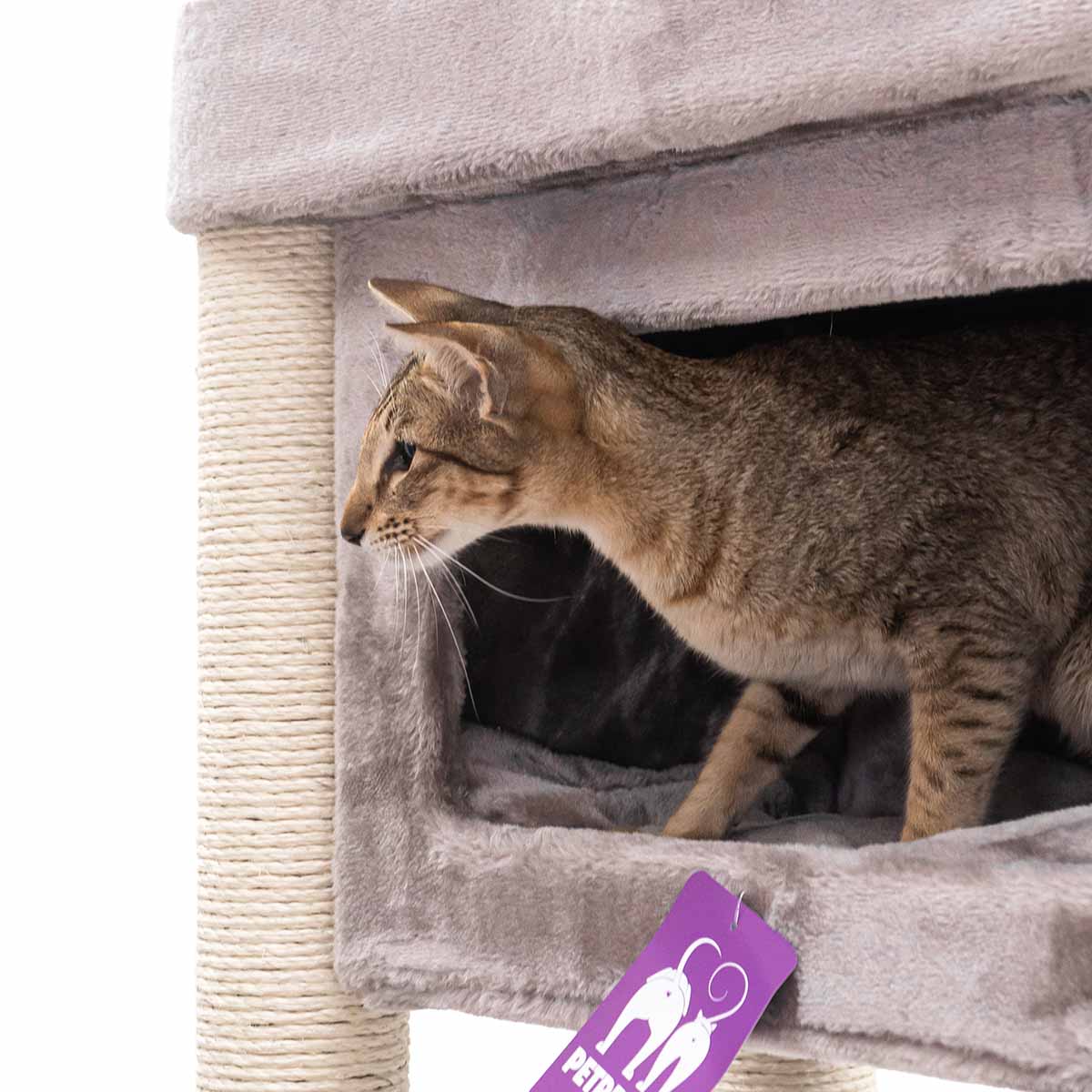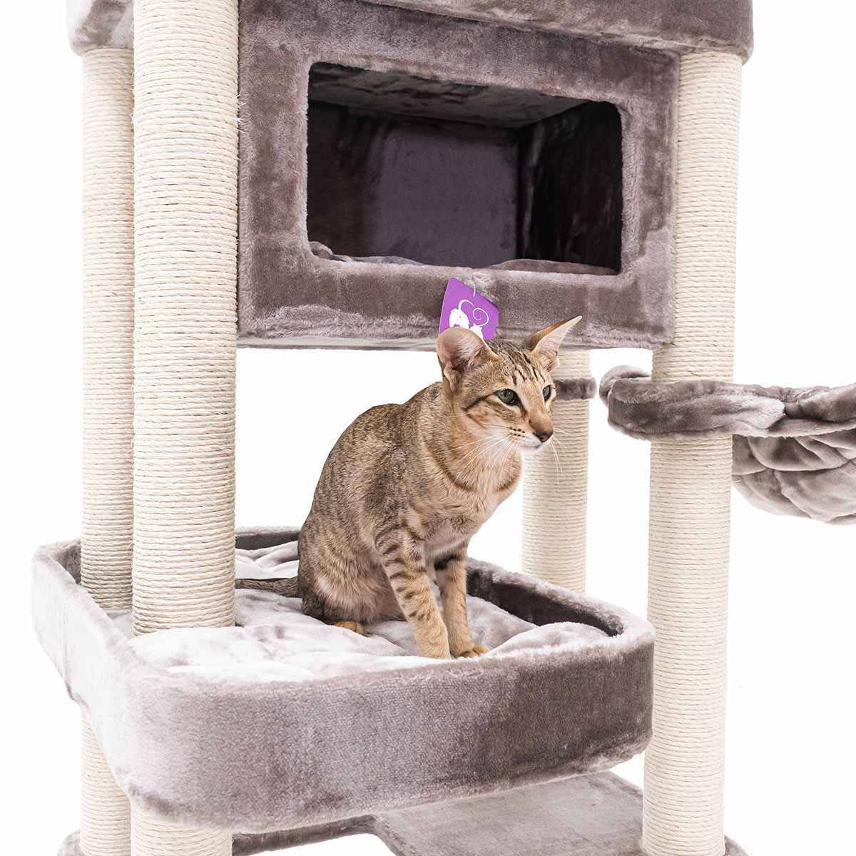 Met een hoogte van 150 cm is de Mansion 150 een krabpaal die je niet snel over het hoofd ziet. Want strak design in combinatie met verrassend veel comfort, dat wil toch elke kat? De rechte lijnen maken hem stoer terwijl de zachte pluche en het slimme ontwerp voor pure luxe voor je kat zorgen. Deze krabpaal heeft het allemaal: een royale hangmat onderin, een fijn slaaphuisje, een speels kruipgat in het eerste plateau en een XXL-loungemand bovenin om in te chillen. Deze krabpaal is compact en dus ook heel geschikt voor wat kleinere kamers. Maar laat je niet foppen door z’n formaat – hier passen met gemak meerdere katten op!