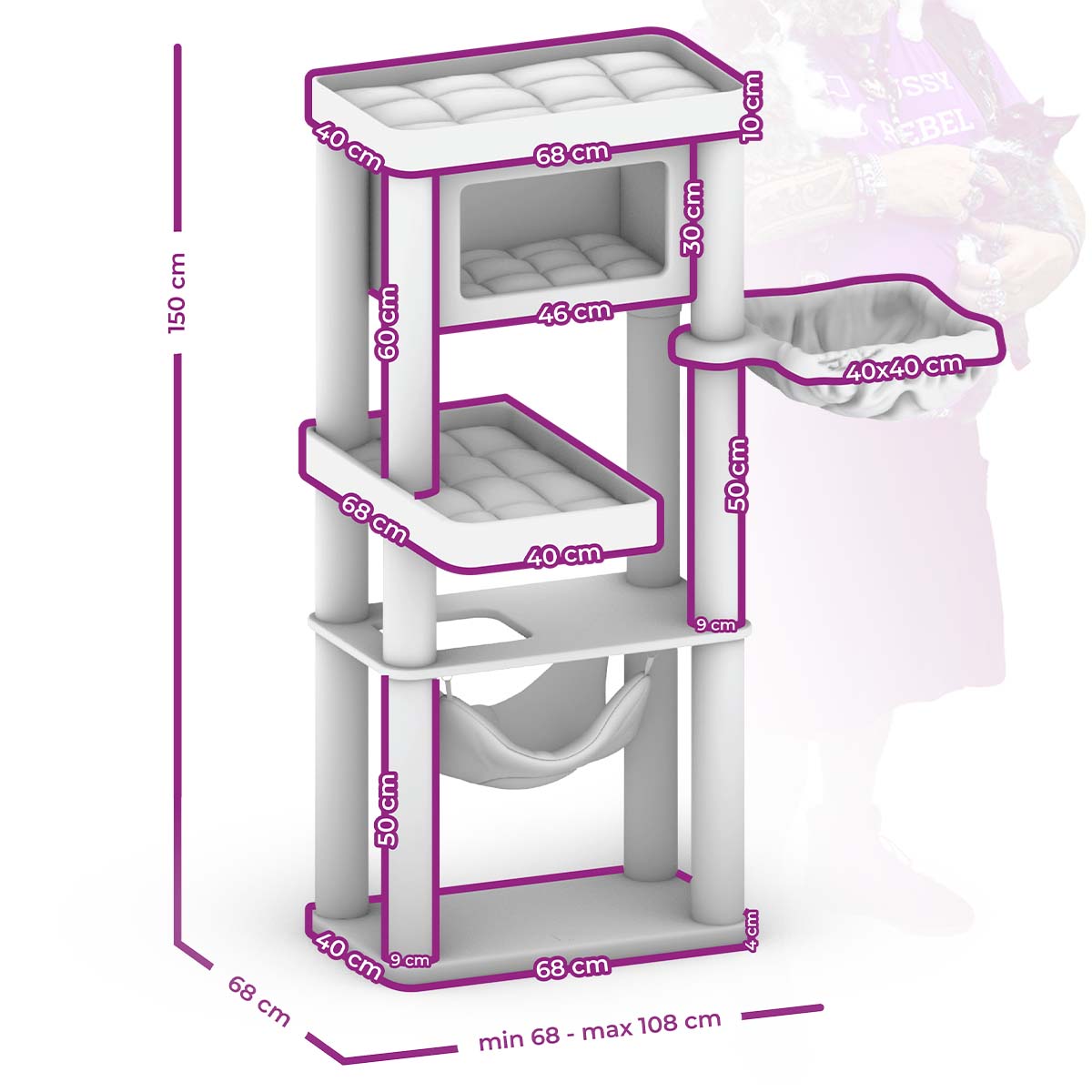 - Afmetingen – lengte 68 cm, breedte 40 cm en hoogte 150 cm