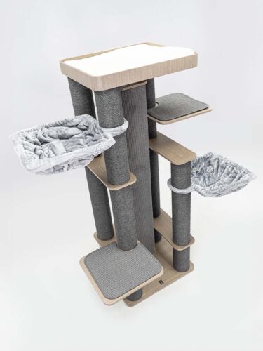 Avontuurlijke katten kunnen hun hart ophalen in kattenmeubel Orion 189. Want hierin kan werkelijk waar alles! Krabben aan de extra dikke krabstammen van 15 centimeter dik, tijgeren aan de 165cm lange boxzak en lekker slapen in een van de twee luxe uitwasbare hangmatten. En de XL-loungemand bovenin is speciaal voor Rebels die graag hoog zitten of liggen. Heerlijk om in te snurken, maar natuurlijk ook om te kijken of de visite wel te vertrouwen is.