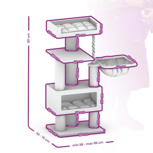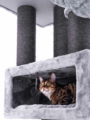 Je regrette cependant qu’il n’y ait pas une petite plate-forme en bas pour aider les chats à accéder aux étages supérieurs.