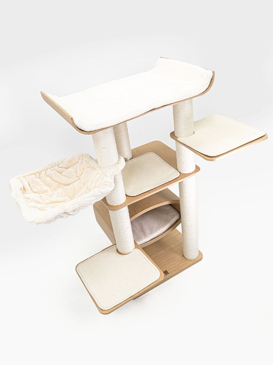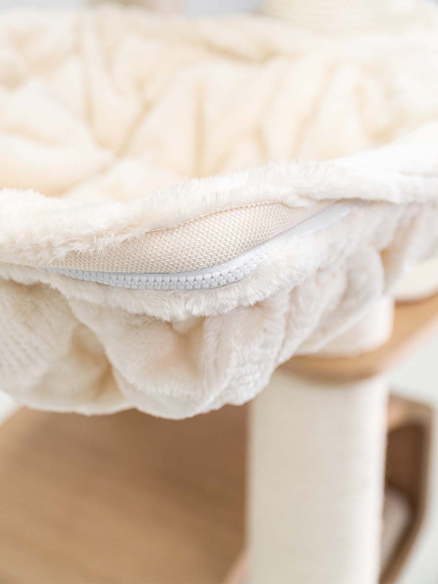 Arbre à chat de qualité. Cependant il est impossible de déhousser le hamac sans démonter certains poteaux… Décevant vu le prix
