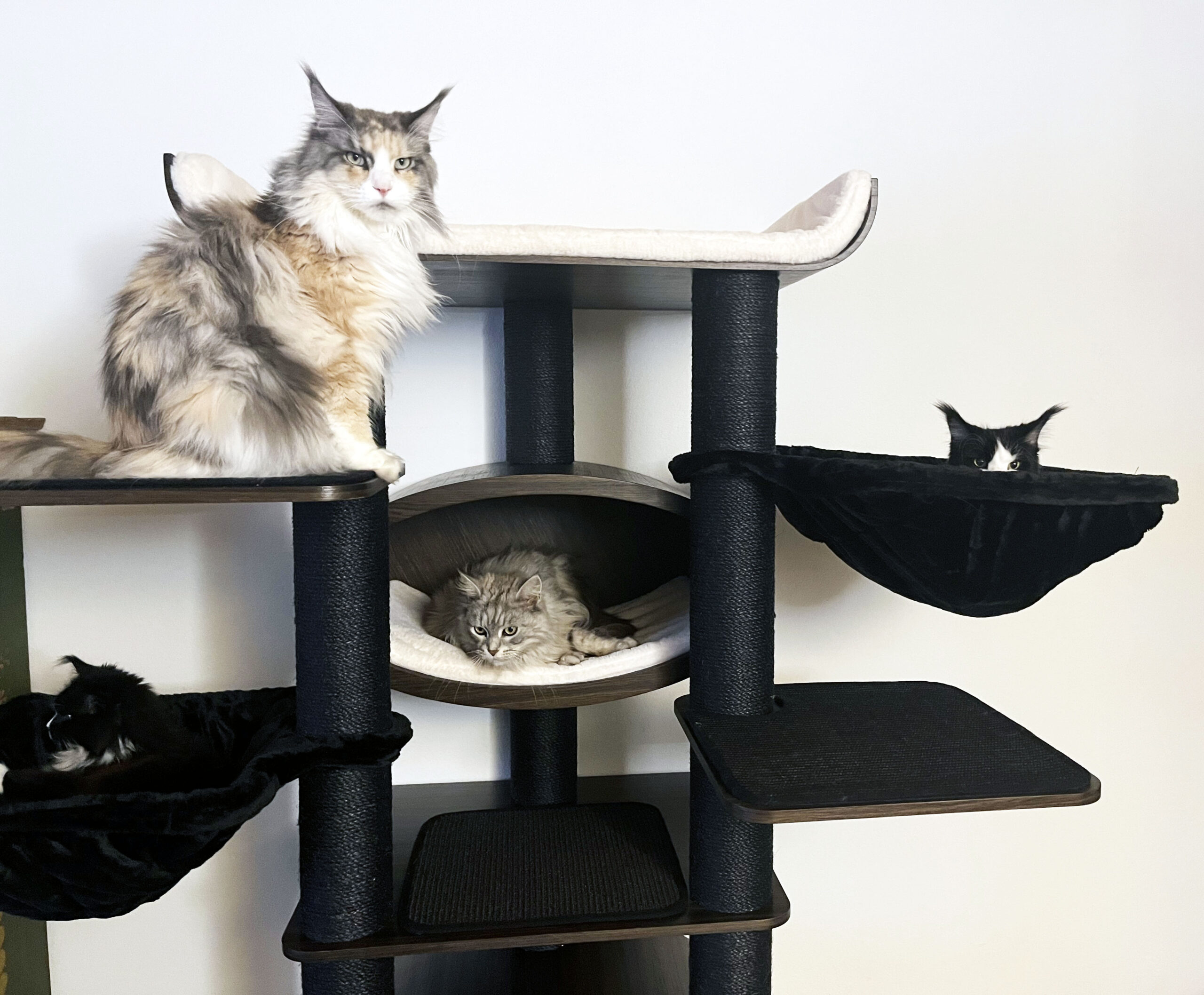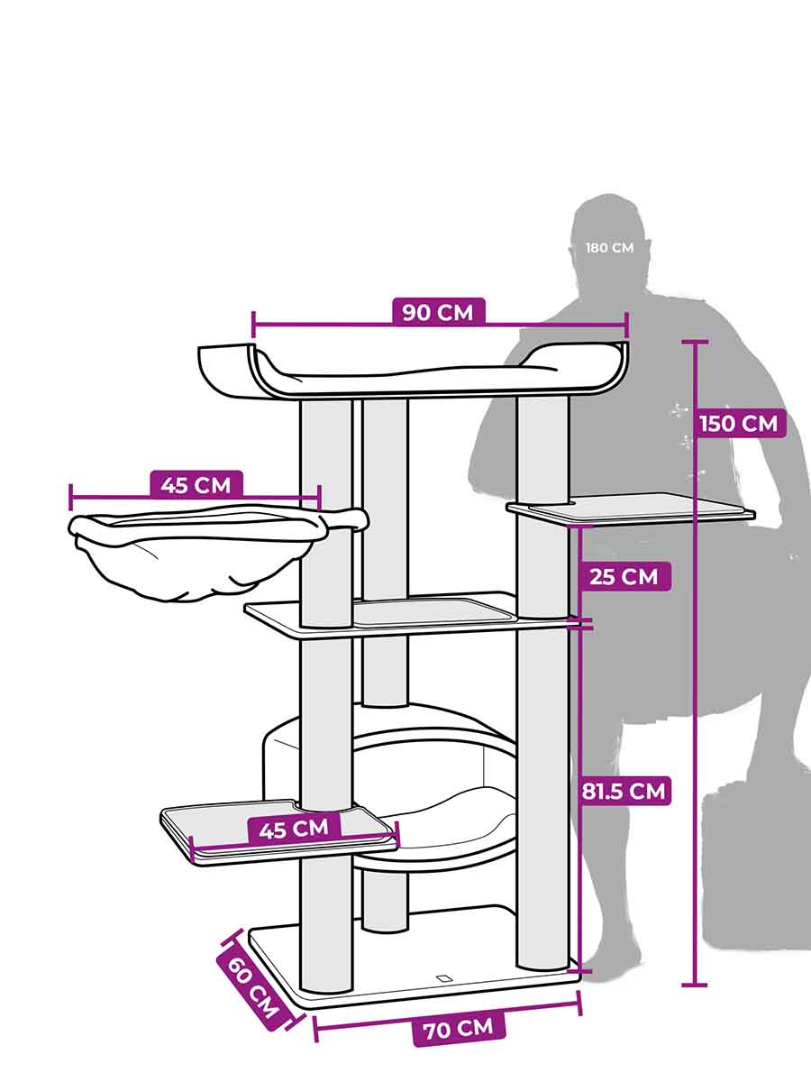 Schönster Kratzbaum ever. Er war leicht aufzubauen. Meine Mietzis haben ihn sofort angenommen und waren auch beim Aufbau sehr neugierig und groß genug ist er auch. Was mir besonders liegt ist, daß man die Hängematte und die Liegeflächen waschen kann.