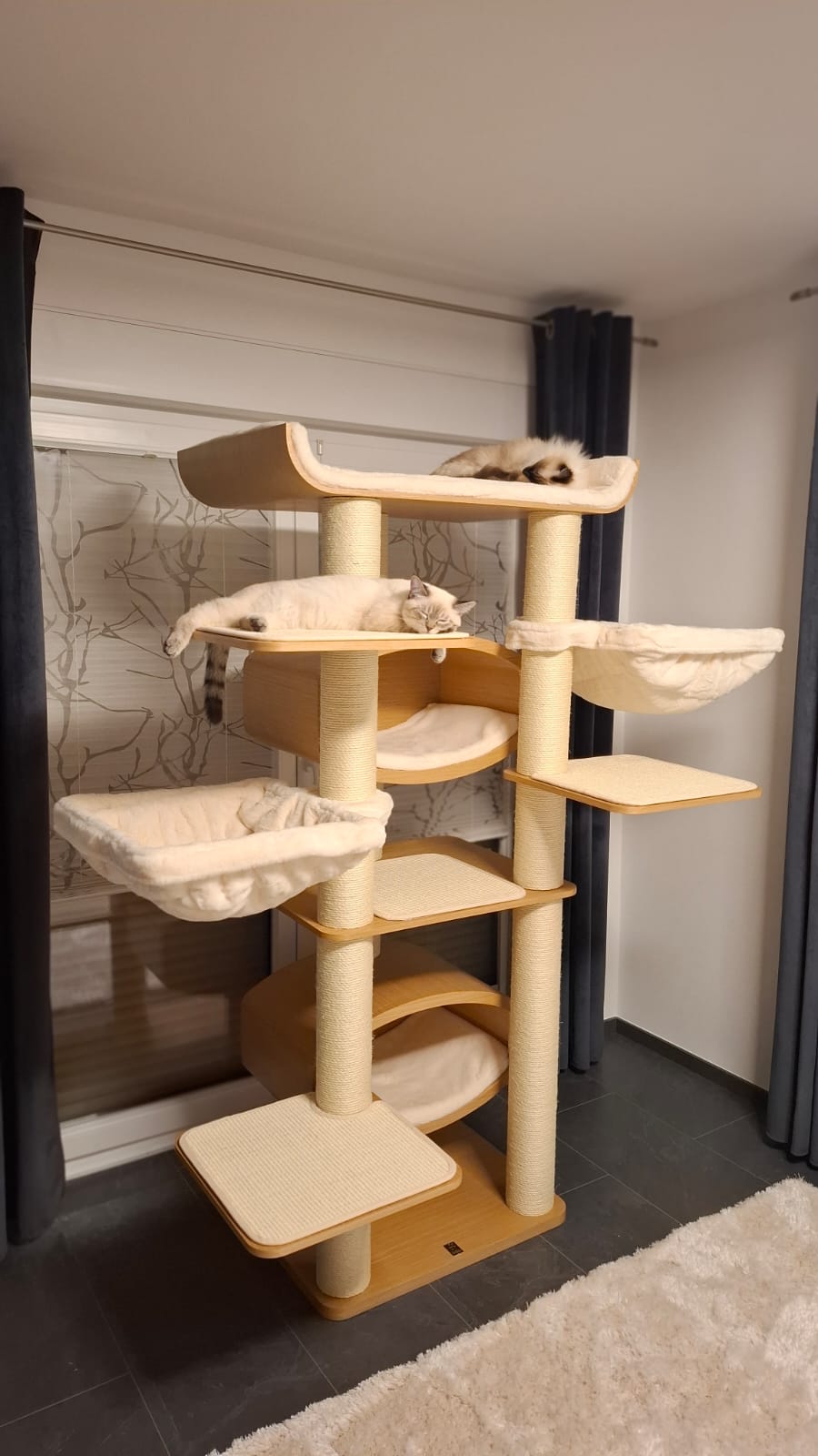 Hele mooie grote en stevige krabpaal. Mijn Ragdolls zijn er vanaf het eerste moment blij mee. Het is een mooi design zonder alle pluche. Poesjes blij, baasje blij ?