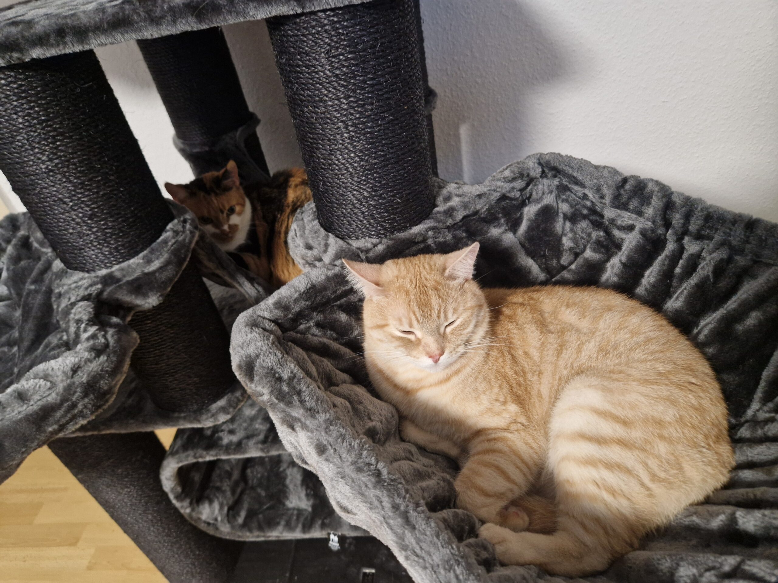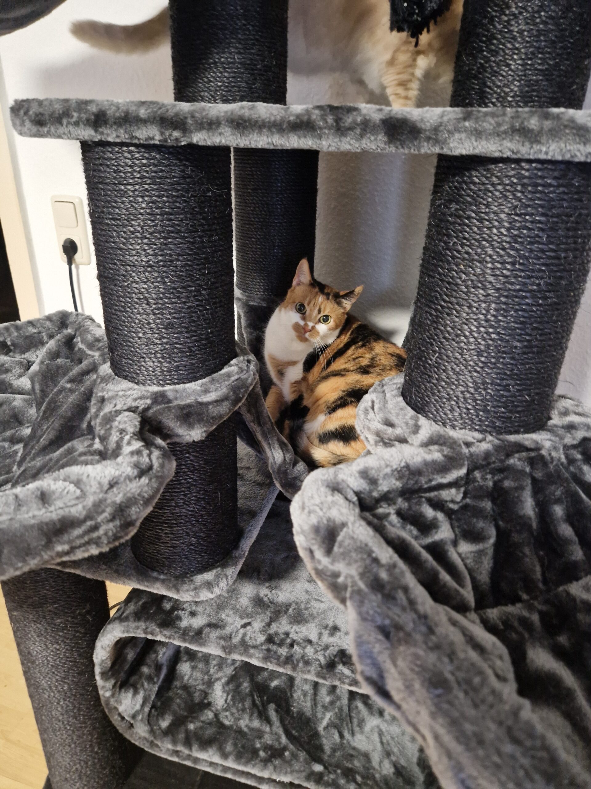 Unsere drei Katzen waren sofort verliebt und haben sofort den gesamten Baum erkundet. Unsere Königin scheint besonders von der Hängematte begeistert zu sein.