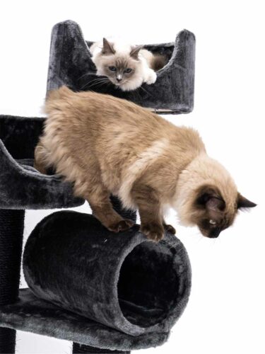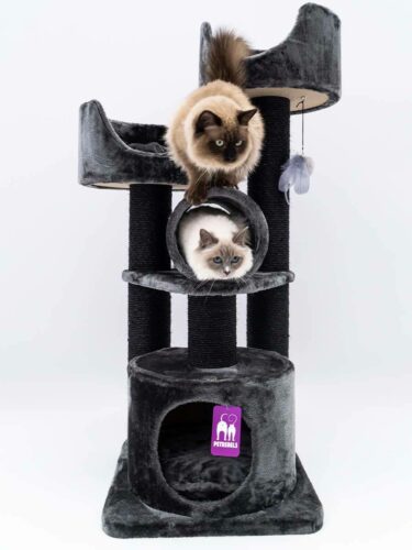 This is my second petrebel scratching tree. I wanted to give my cats additional room to play and climb. I got it yesterday and they already enjoy climbing it. The high borders of the sleeping beds make them feel comfortable and they enjoy the new perspective very much. The quality of the tree is high as usual. The scratching poles are thick and the tree is very stable overall. The roll is great for play and already well tested by my felines. Highly recommended!
