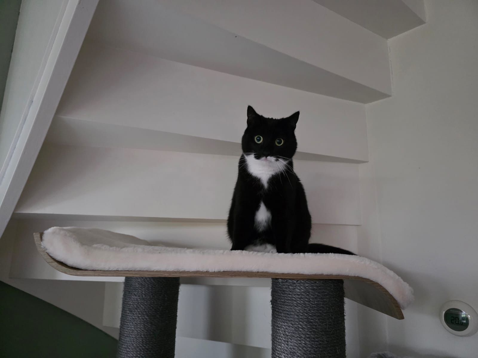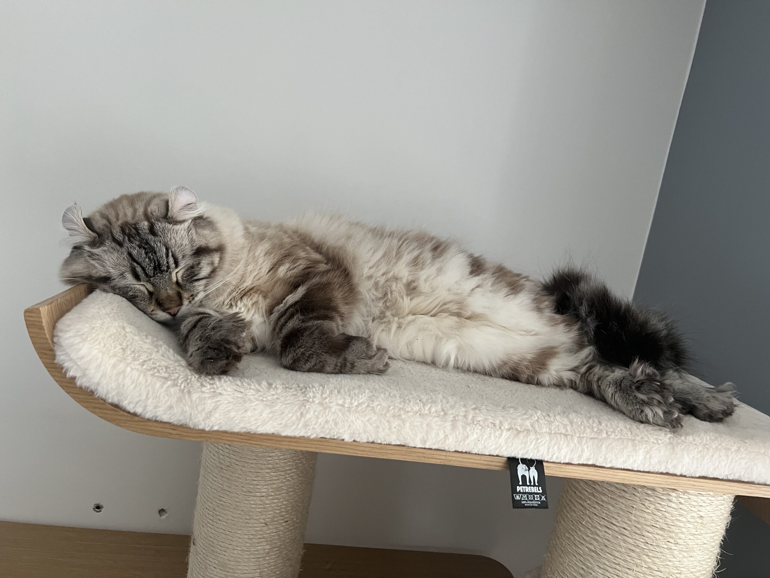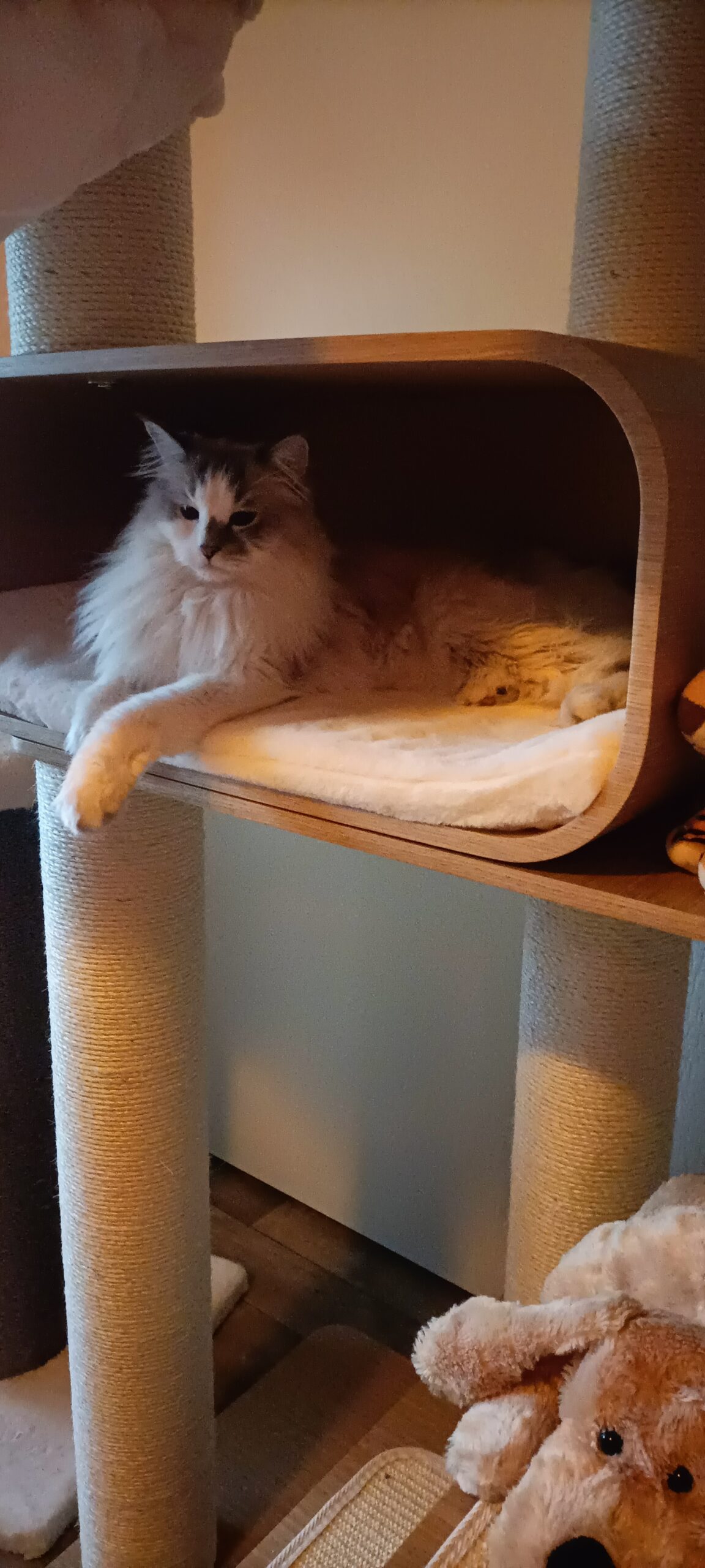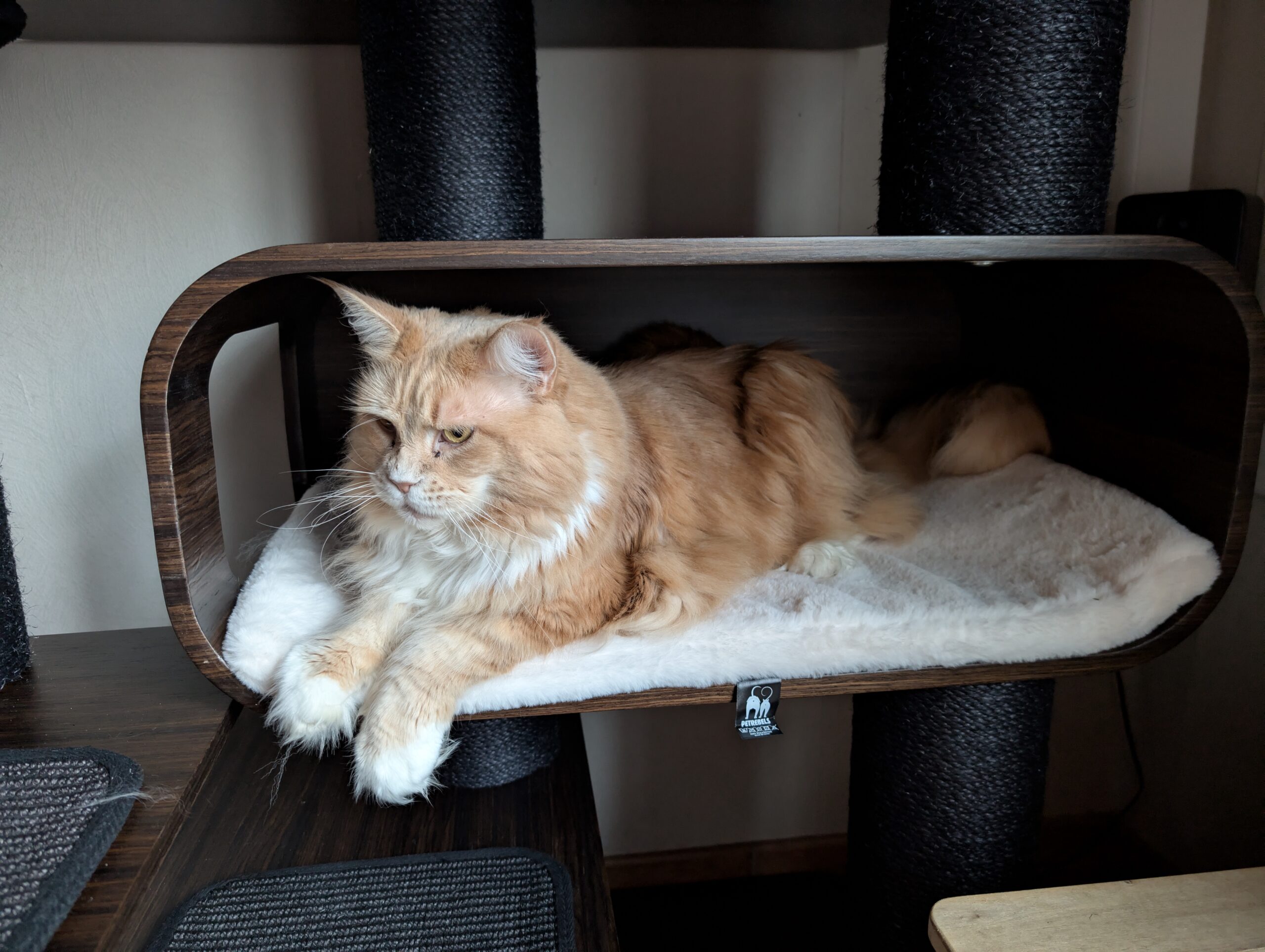 Heel mooi,juist jammer dat je de krabpaal uit mekaar moet halen om de hangkussens eruit te halen.