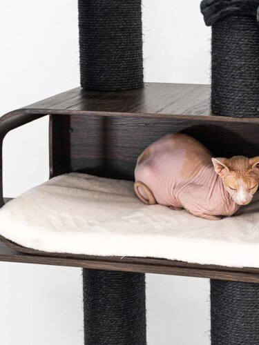 Heel mooi,juist jammer dat je de krabpaal uit mekaar moet halen om de hangkussens eruit te halen.