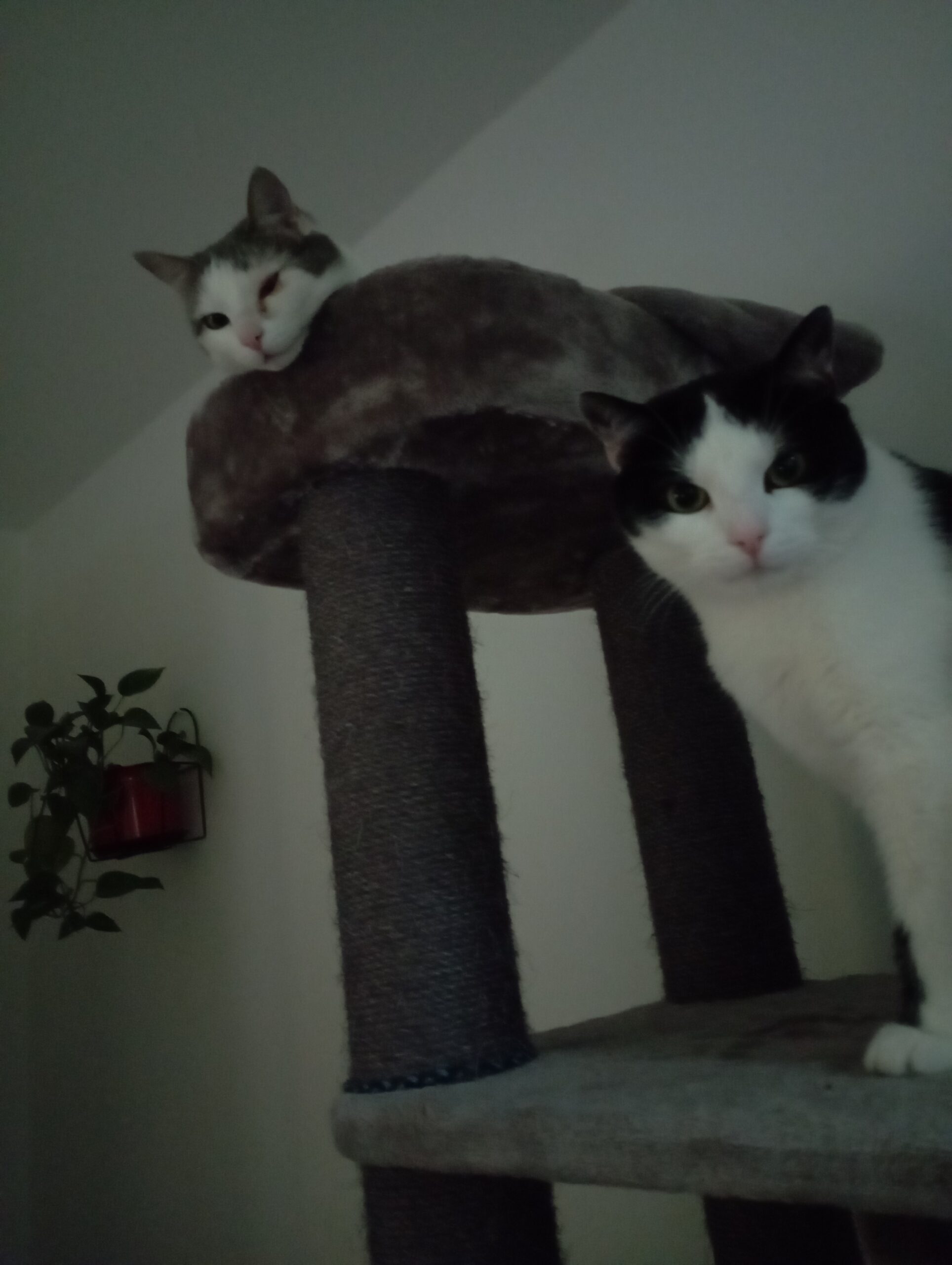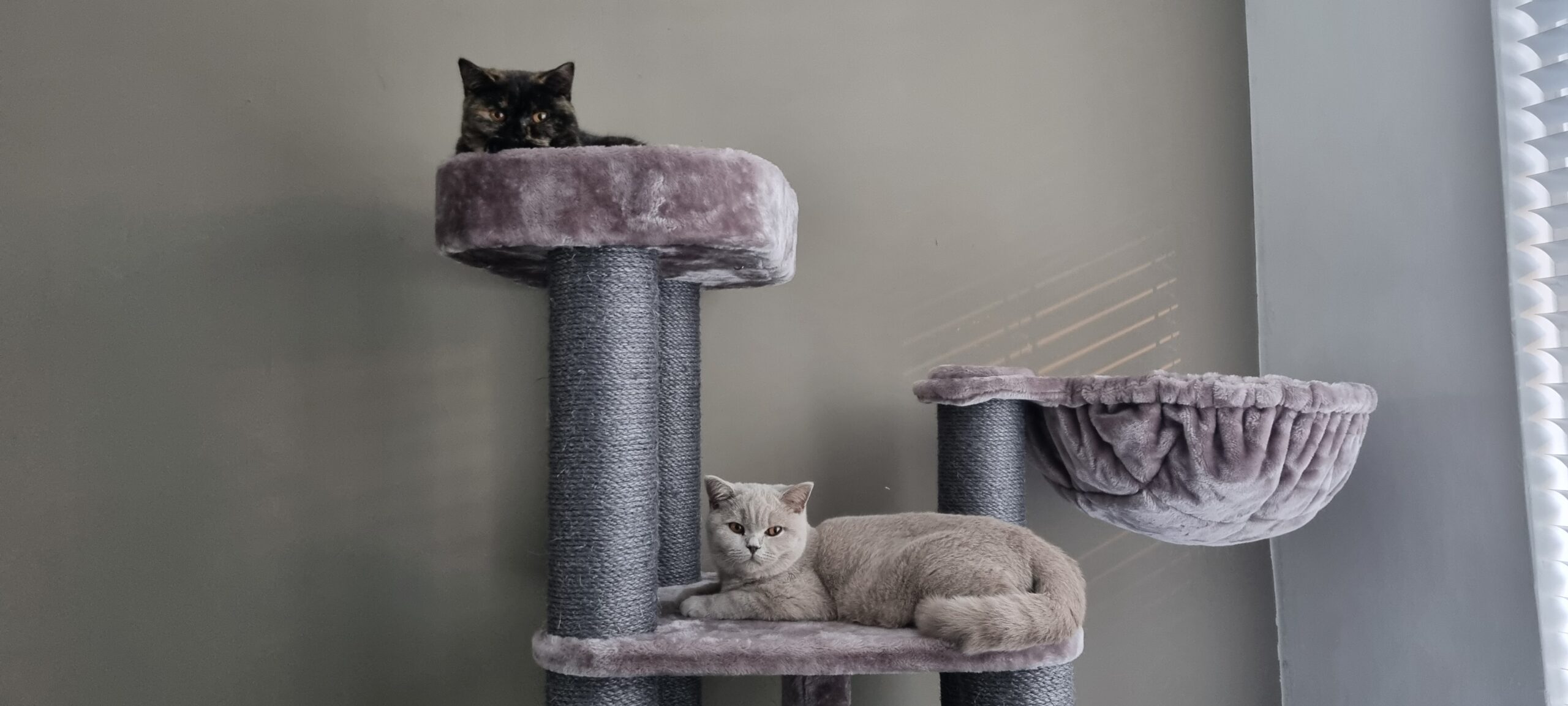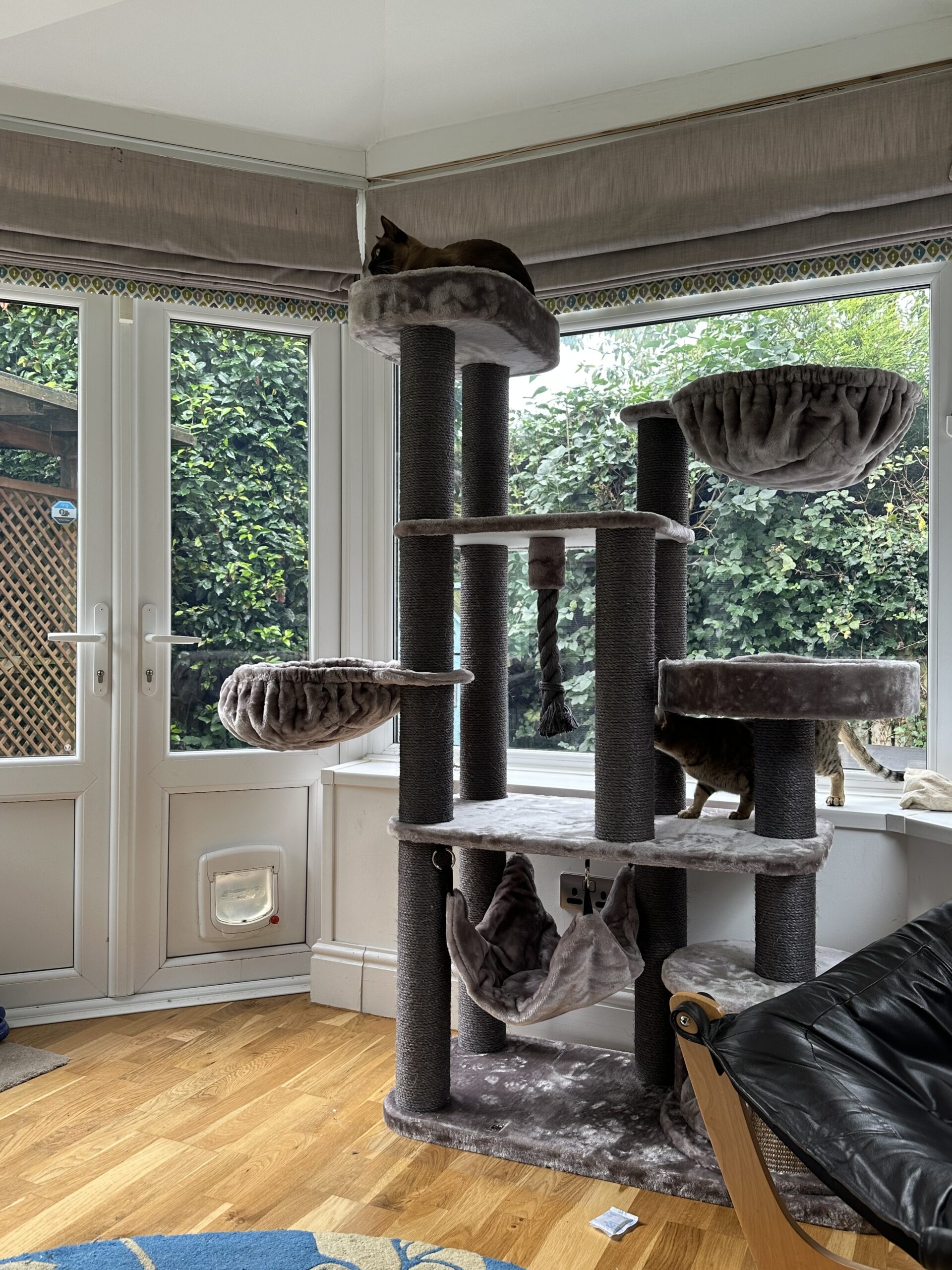 Na deze uitleg waren we overtuigd en bij het zien van de krabpaal waren we verkocht. Een robuust model dat prima staat in een woonkamer mede dankzij de mooie kleur en vanaf de eerste minuut na het opbouwen zaten onze katten er al op! Tegen de avond hadden ze beide al eens in heerlijk grote en stevige hanglepels liggen slapen.