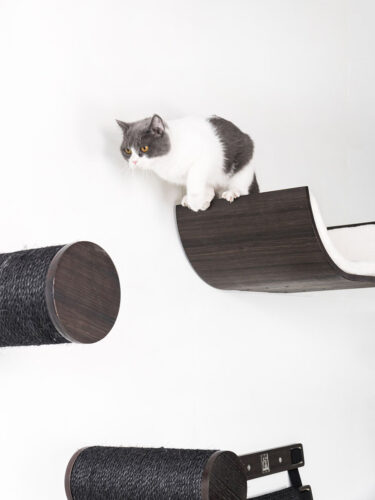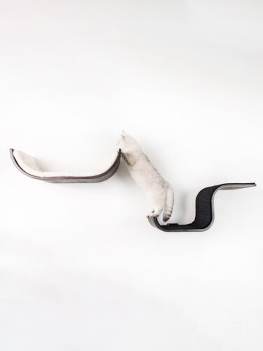 Curve 70 is een smaakvol gebogen muurplank met relaxkussen en onderdeel van onze Wall of Rebels collectie: een prachtige lijn producten waar katten in kunnen slapen, spelen, klimmen, overheen kunnen rennen en aan kunnen krabben. En die je eindeloos kunt combineren. Van deze kattenmand wordt elke kat blij, want je kunt Curve 70 laag bij de grond ophangen voor de kleinsten en de wat oudere katten. Zit je kat graag hoog en draait die zijn poot niet om voor een avontuurlijke klimtocht? Hang dit kattenbed dan lekker hoog op. En met de toffe Steps, Horizon, Ladder of Bridge uit de Wall of Rebels collectie zorg je ervoor dat je kat overal makkelijk bij komt.