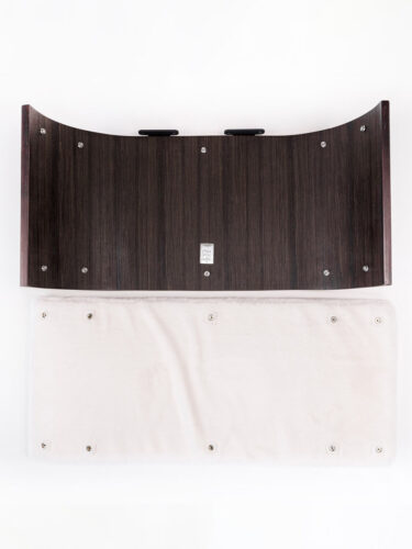 - Kleuren – off-white pluche en wengé veneer