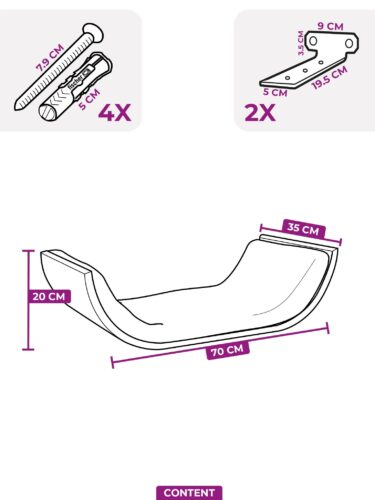 - Afmetingen – lengte 70 cm, breedte 35 cm en hoogte 20 cm