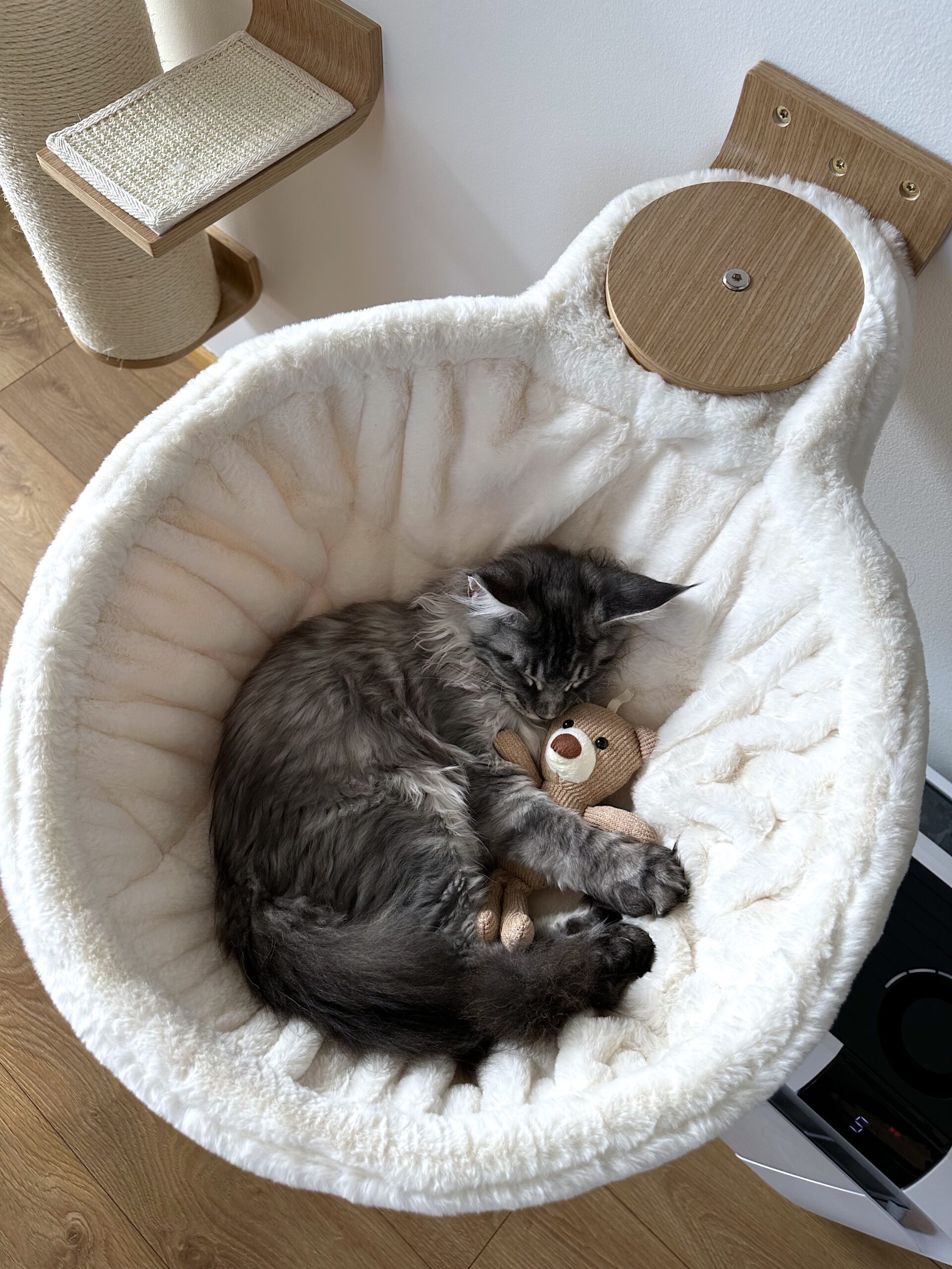 - De hangmat is gemaakt van wasbare pluche en kan makkelijk worden vastgezet