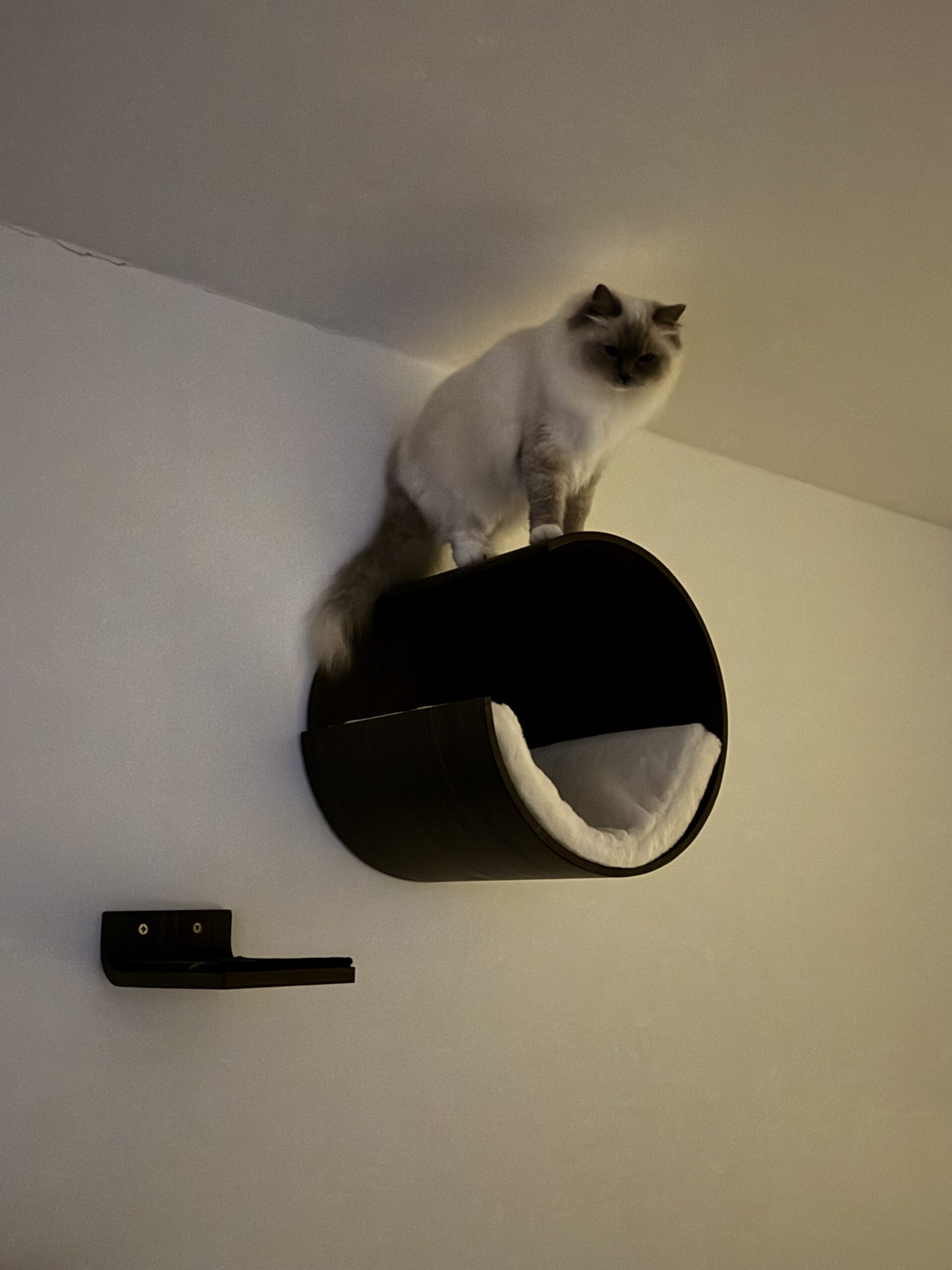 Moon 40 is een heerlijk zachte kattenmand die je aan de muur kunt bevestigen en onderdeel van onze Wall of Rebels collectie: een prachtige lijn producten waar katten in kunnen slapen, spelen, klimmen, overheen kunnen rennen en aan kunnen krabben. En die je eindeloos kunt combineren. Monteer Moon 40 laag bij de grond als je kat wat ouder is, of niet zo mobiel. Is je kat actief? Hang deze kattenmand dan lekker hoog op en combineer die met de handige klimonderdelen van Wall of Rebels – zoals de Steps, Horizon, Ladder of Bridge.