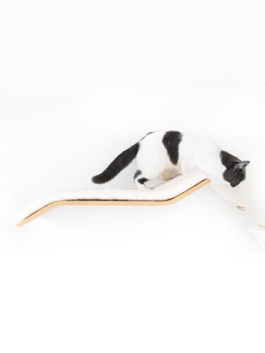Wave 70 is een smaakvol gebogen wandplank met kattenkussen en onderdeel van onze Wall of Rebels: een prachtige collectie producten waar katten in kunnen slapen, spelen, klimmen, overheen kunnen rennen en aan kunnen krabben. Hang Wave 70 laag bij de grond als je kat nog klein is of wat ouder. Of juist lekker hoog als je kat speels en actief is. Heb je nog meer katten in huis? Die verwen je natuurlijk ook met een fijne slaapplek – kattenmand Moon 40 is gezellig knus en kattenplanken Relax 50 en Curve 70 zijn groot en zacht. En met de toffe Wall of Rebels Steps, Scratch 70, Ladder of Bridge is elk onderdeel goed bereikbaar.
